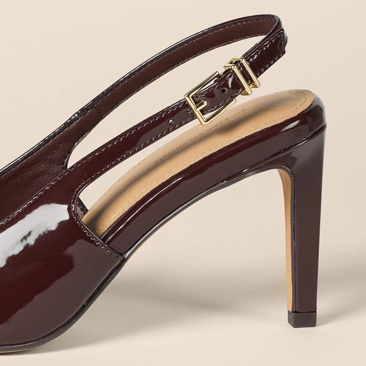 Amazon Essentials Women’s Slingback Heels(Brown Patent)