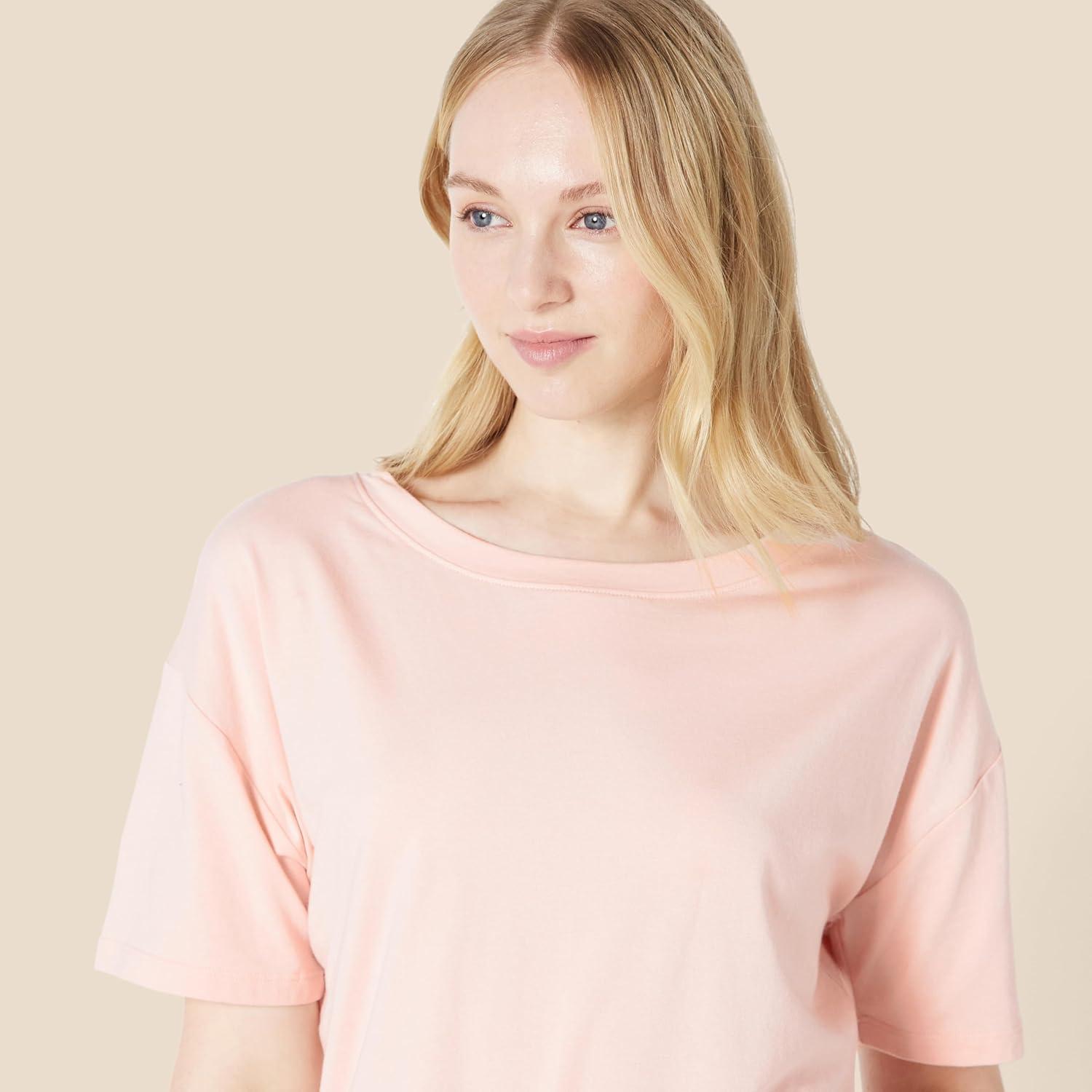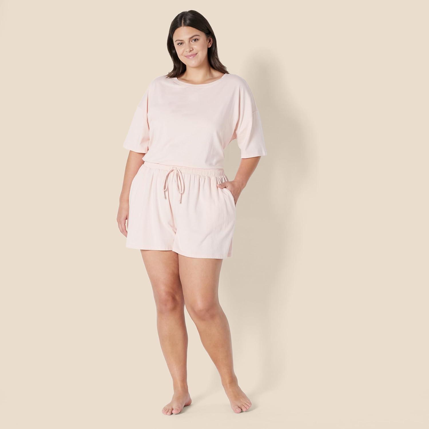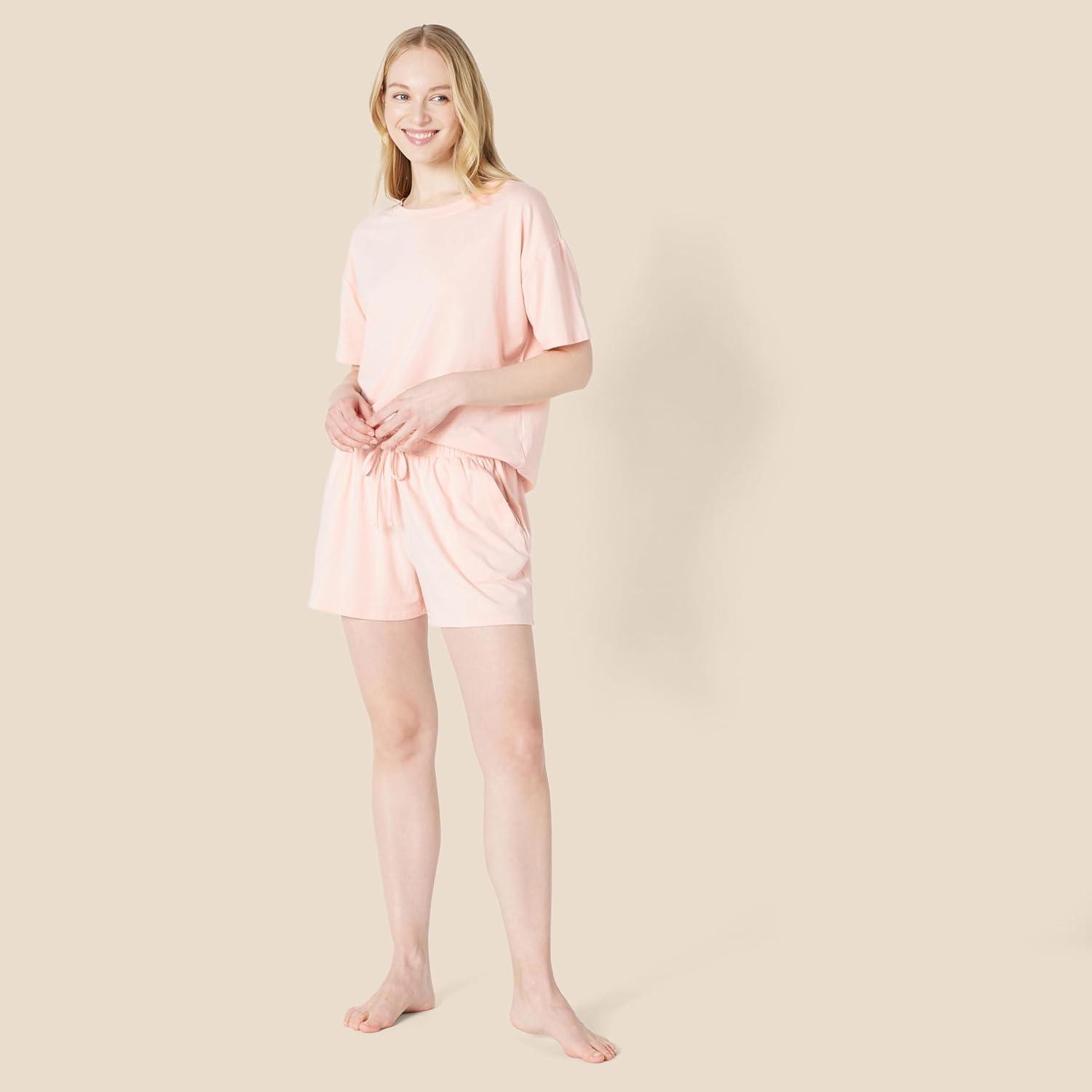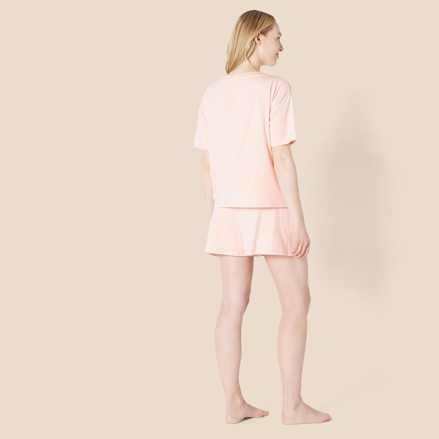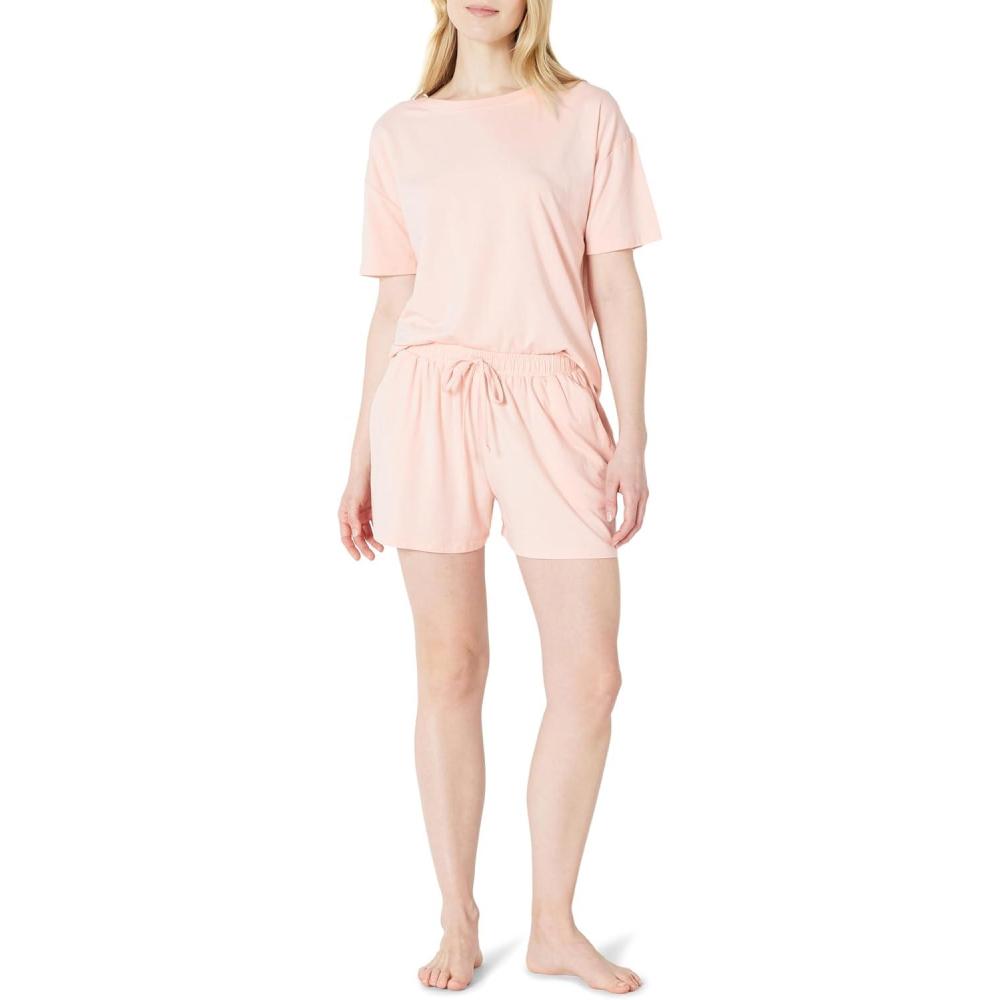 Amazon Essentials Women’s Soft Cotton Blend Short Sleeve T-Shirt and Short Sleepwear Set(Light Pink)