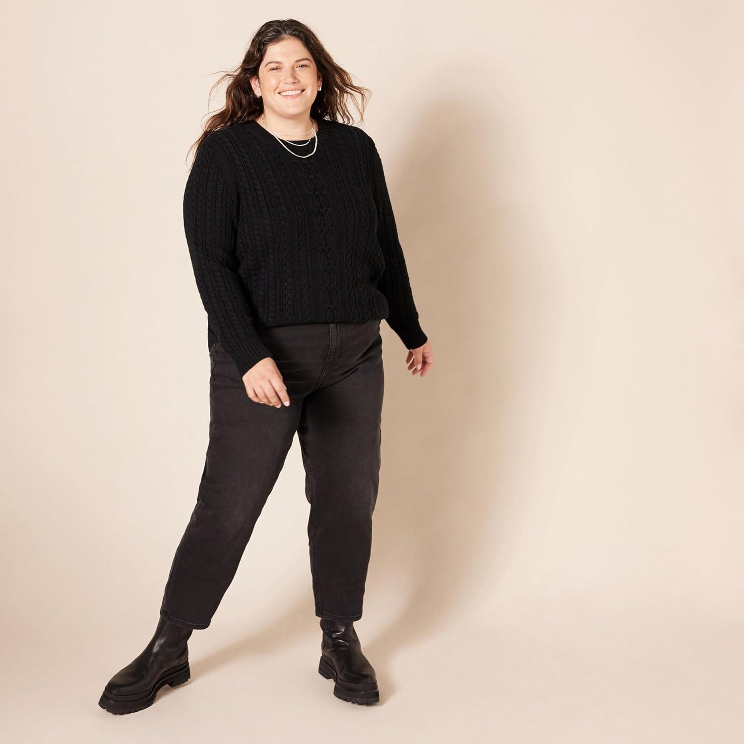 Amazon Essentials Women’s Soft Fisherman Cable Long-Sleeve Crewneck Sweater (Available in Plus Size)(Black)