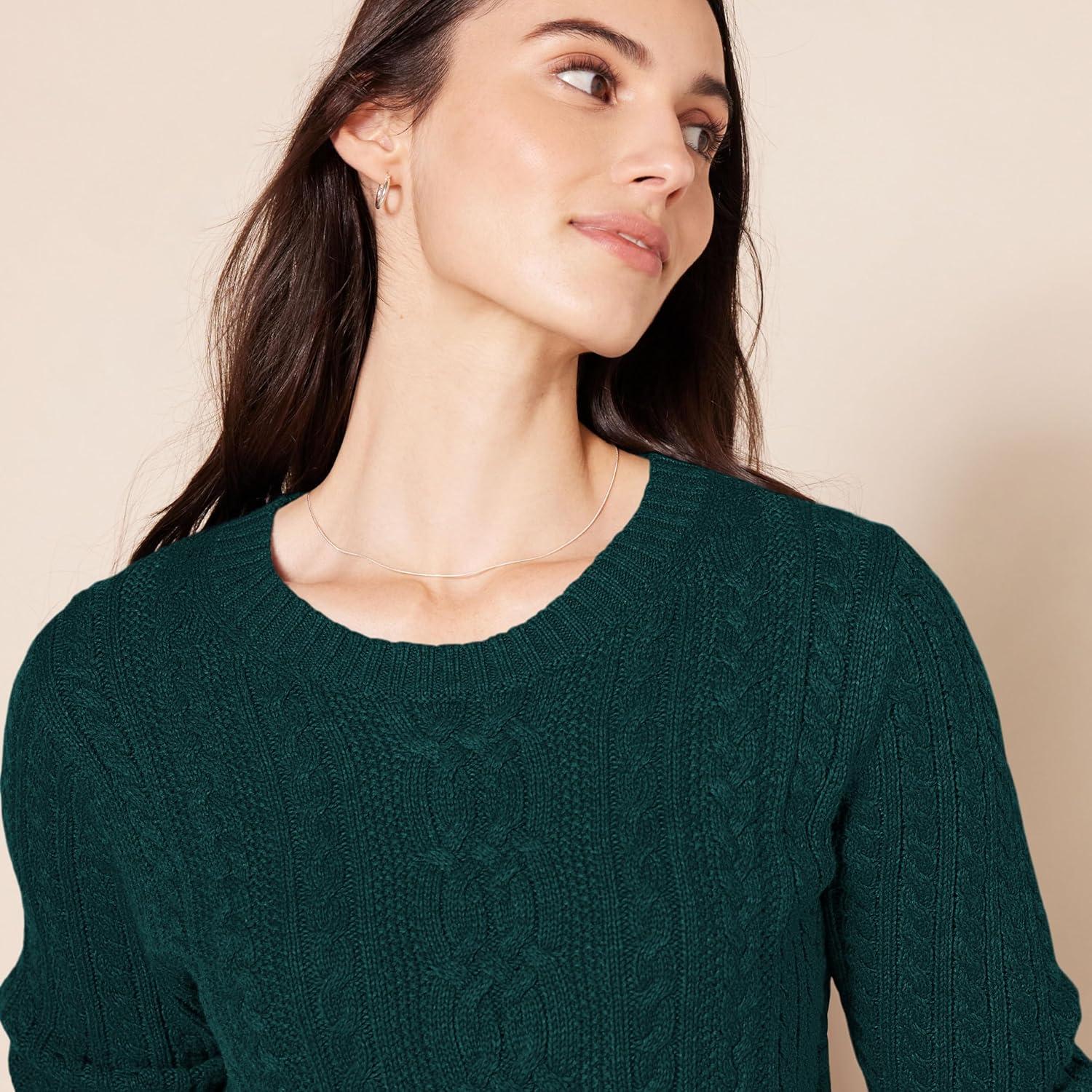 Amazon Essentials Women's Soft Fisherman Cable Long-Sleeve Crewneck Sweater (Available in Plus Size)(Deep Green)
