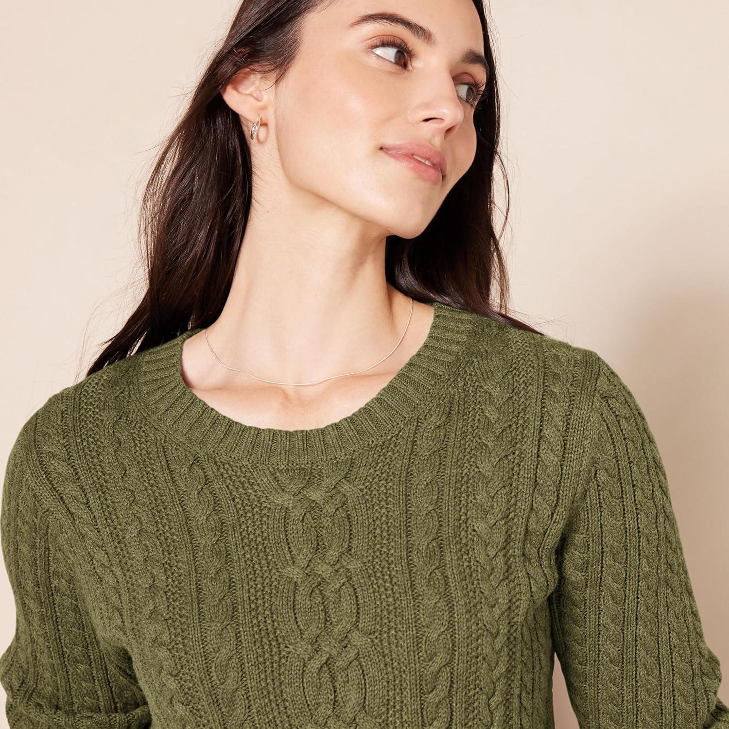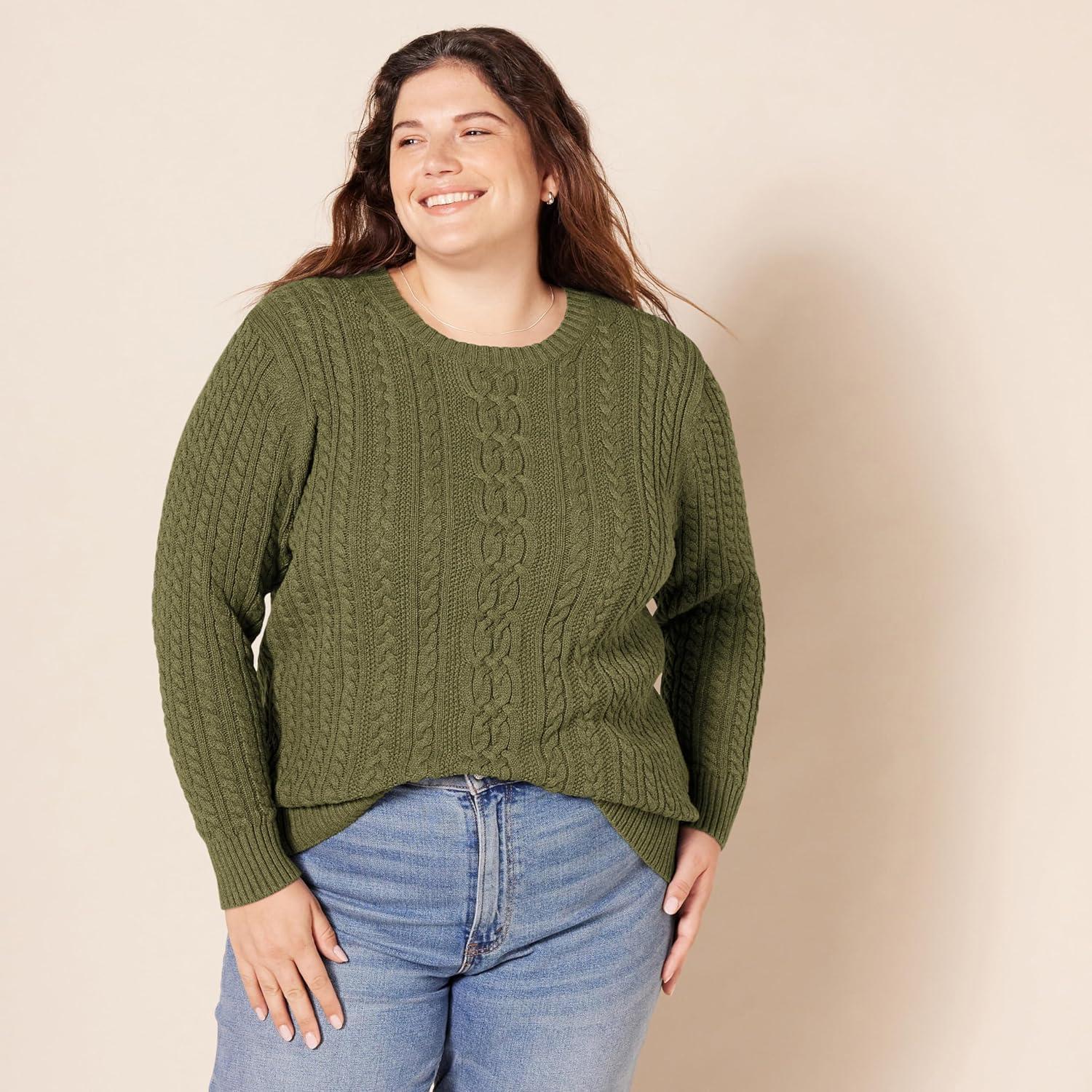 Amazon Essentials Women’s Soft Fisherman Cable Long-Sleeve Crewneck Sweater (Available in Plus Size)(Olive)