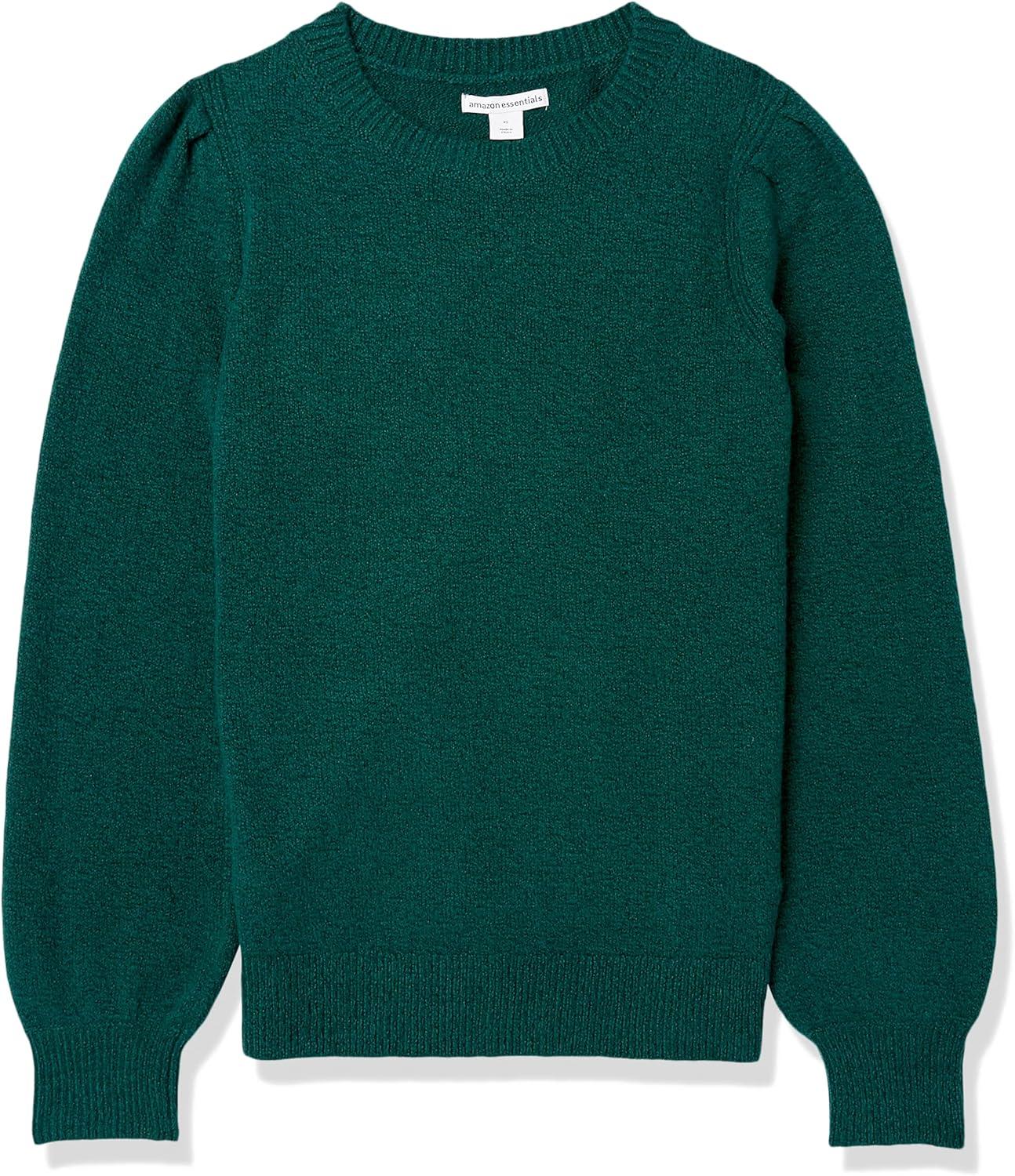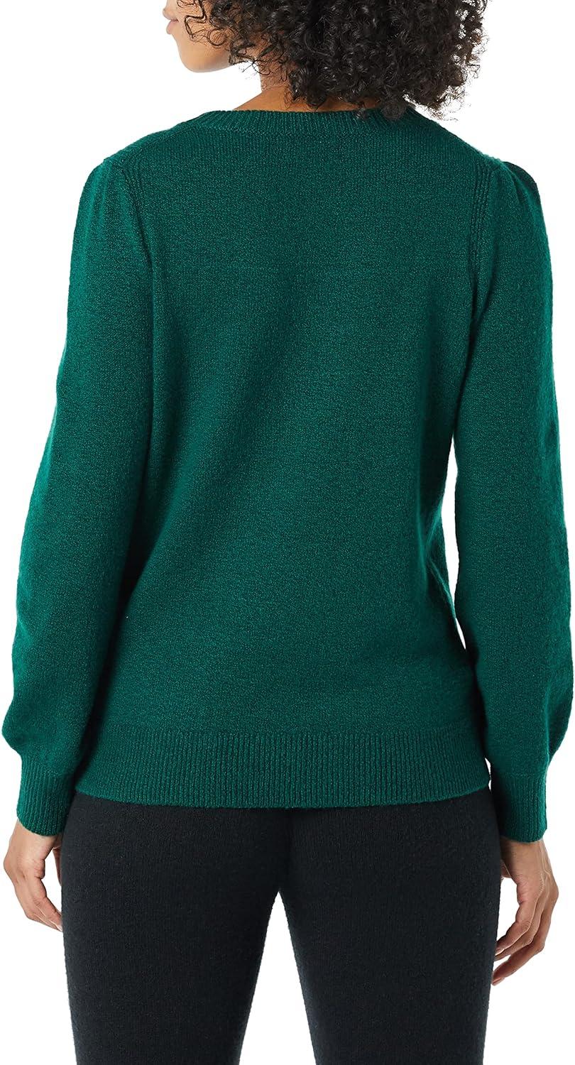 Amazon Essentials Women’s Soft Touch Pleated Shoulder Crewneck Sweater(Dark Green)