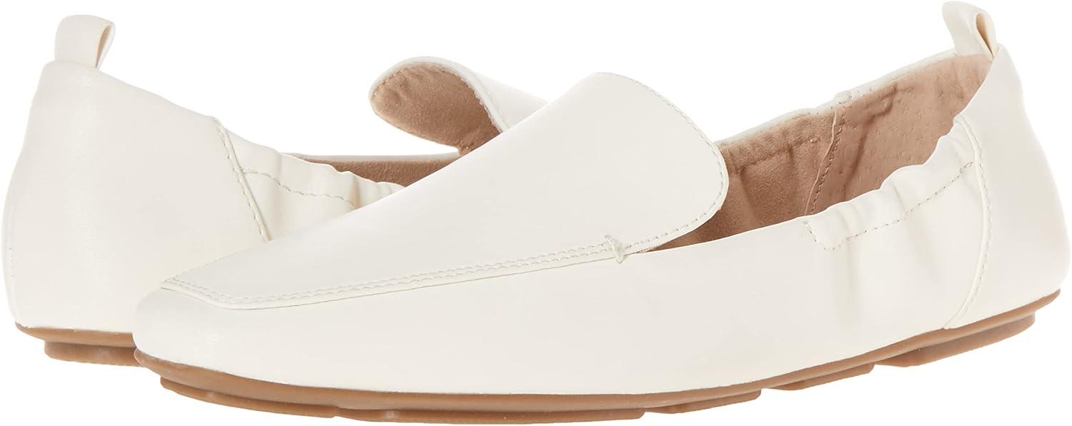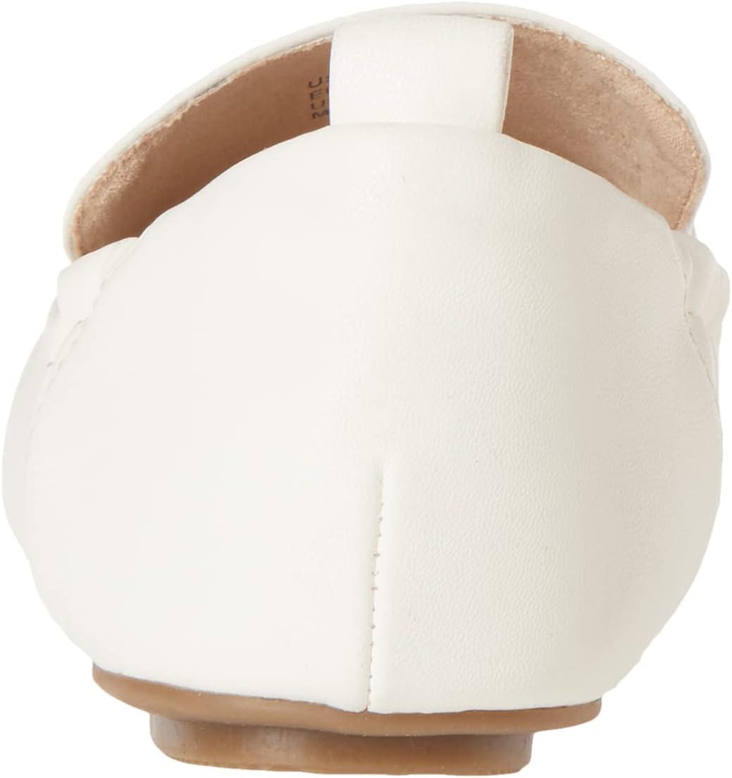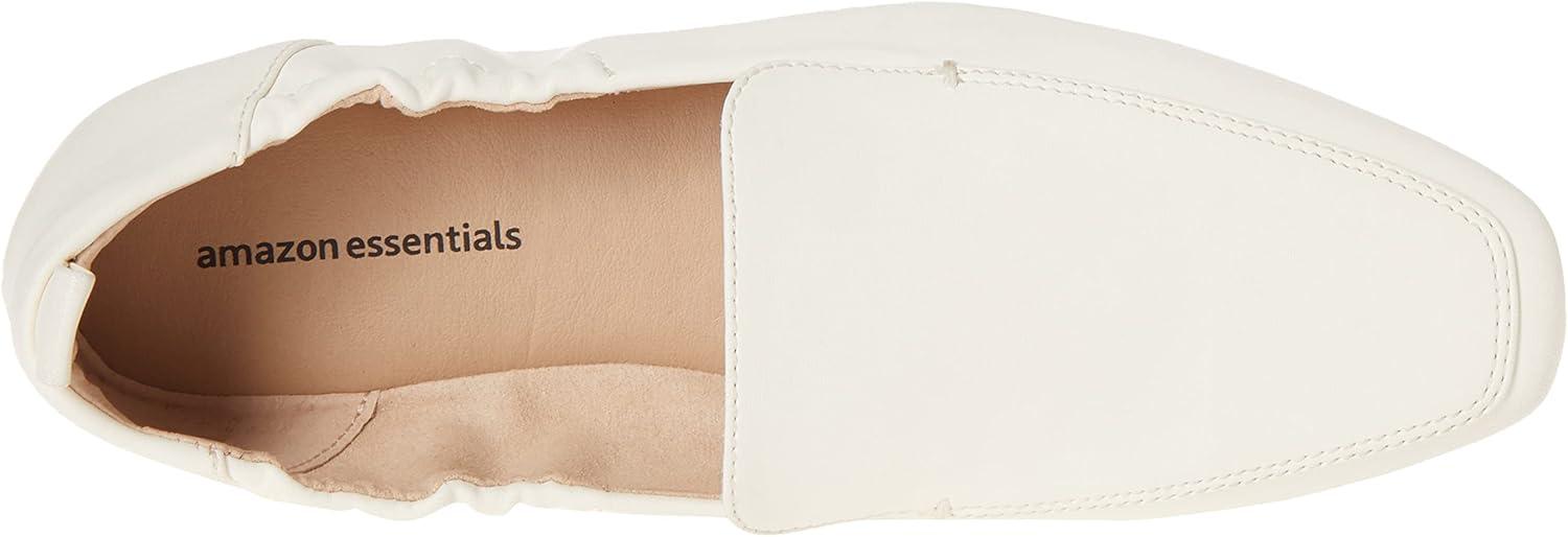 Amazon Essentials Womens Square Toe Soft Slip on Loafer(Ecru Faux Leather)