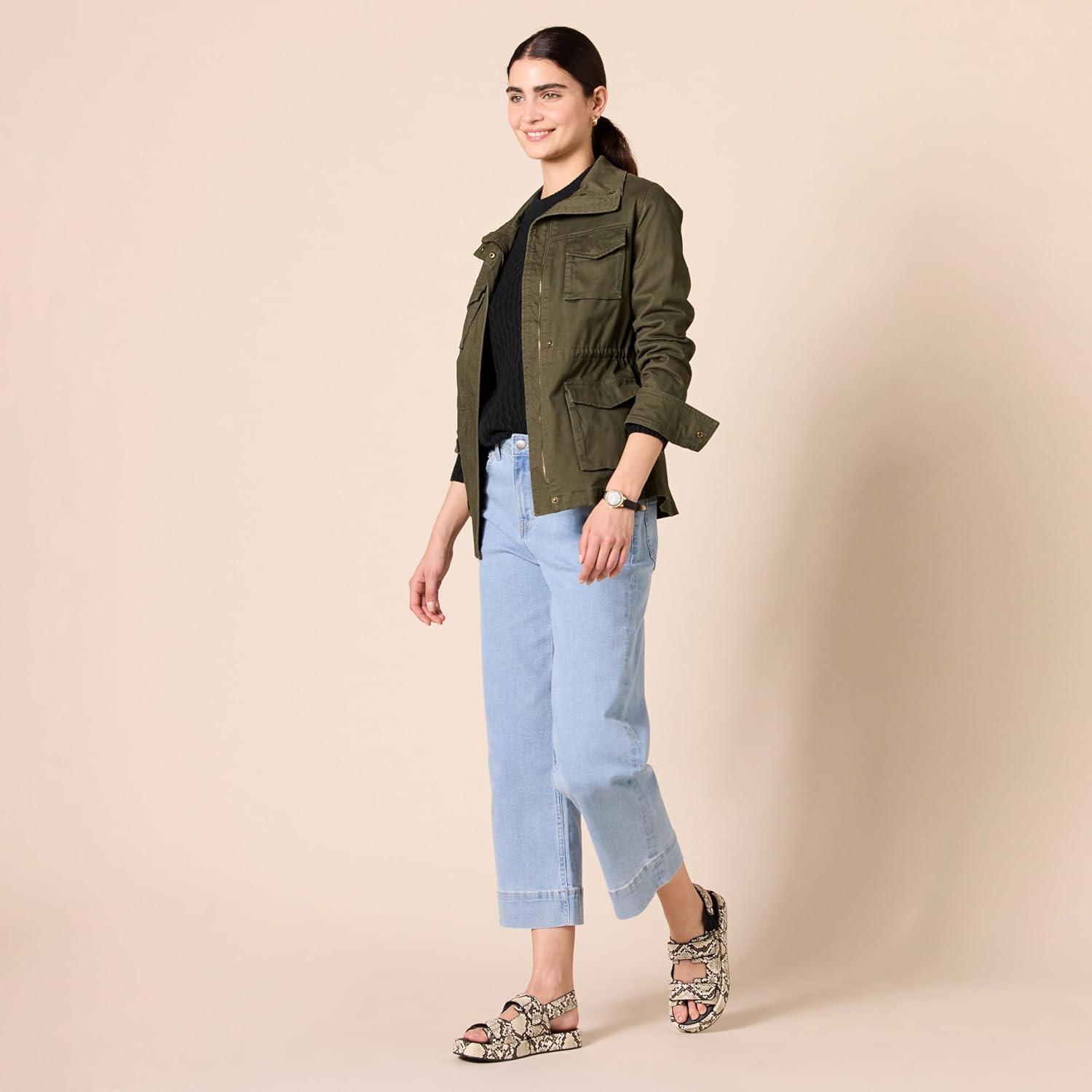 Amazon Essentials Women’s Relaxed Fit V-Neck Cropped Cardigan(Tan)