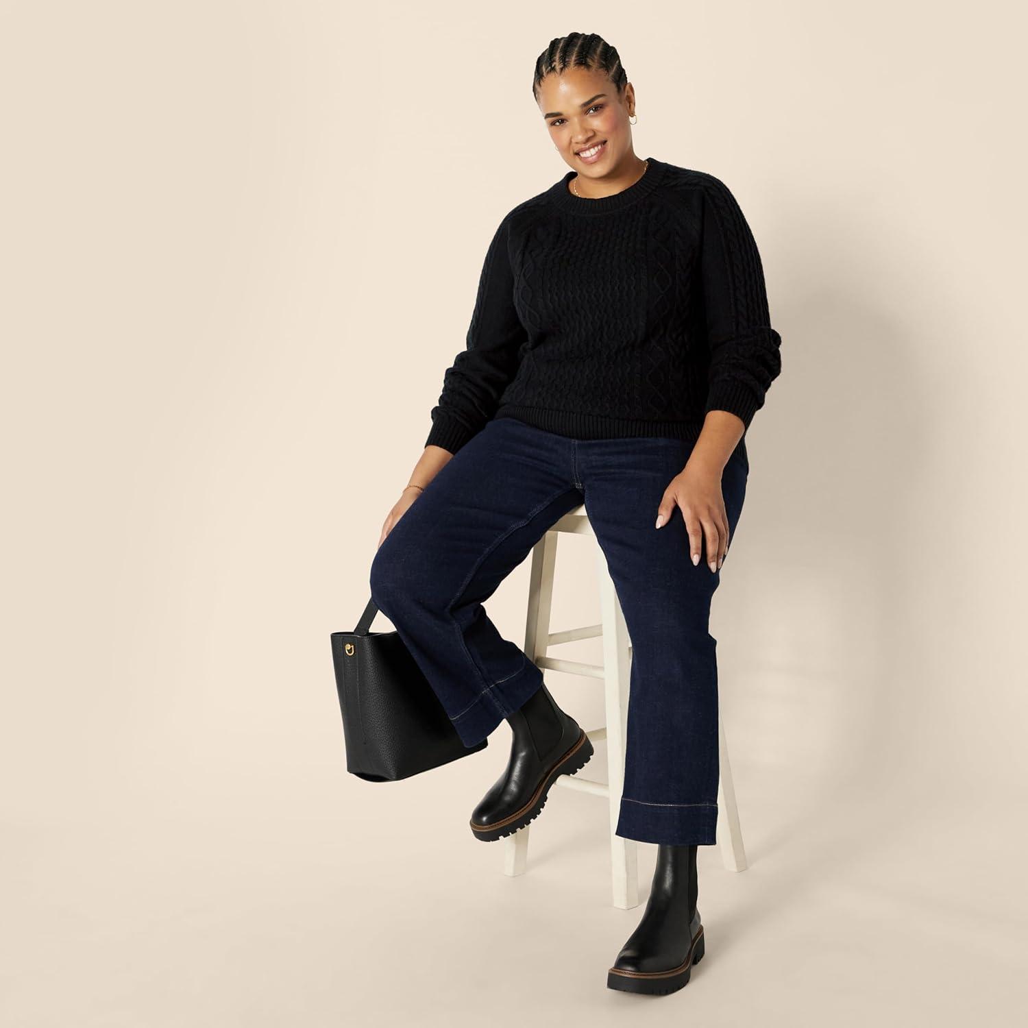Amazon Essentials Women's Stitch Cable Sweater(Black)