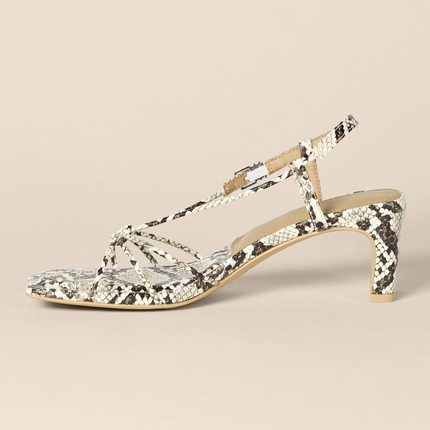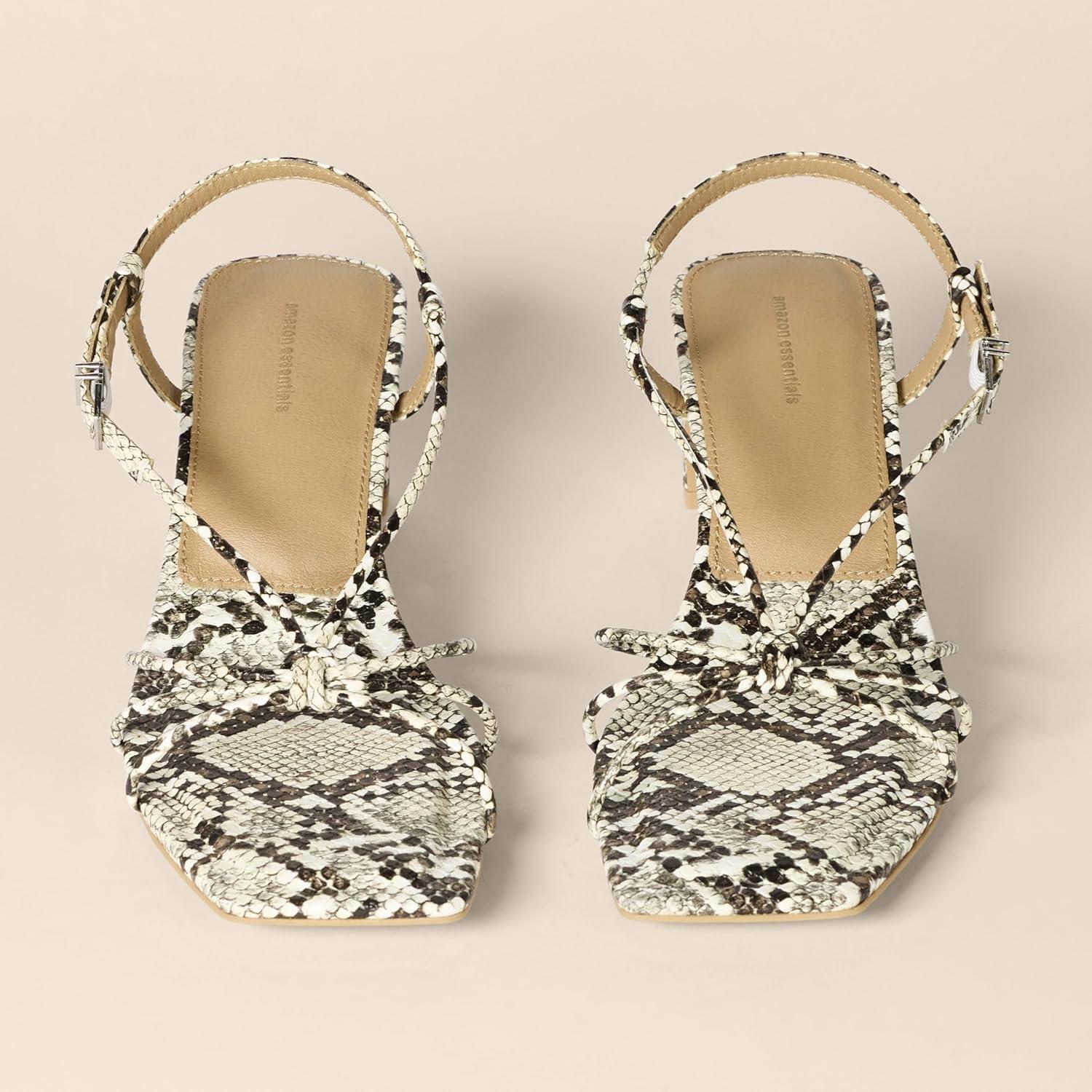 Amazon Essentials Women’s Strappy Block Heel Sandals(Grey Faux Snakeskin)