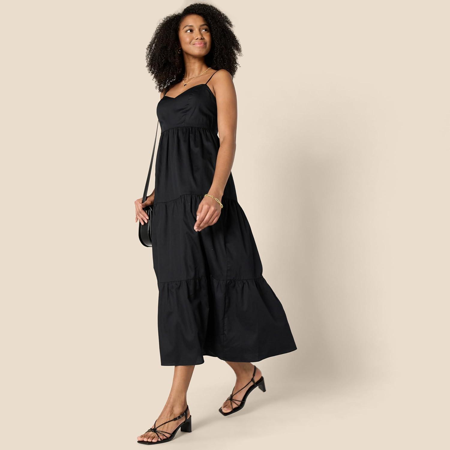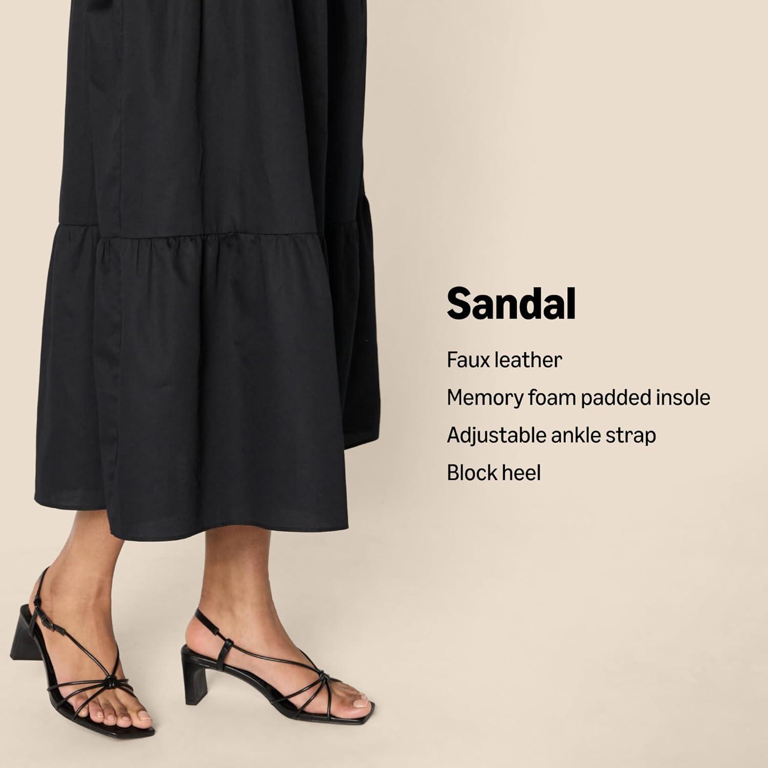 Amazon Essentials Women’s Strappy Block Heel Sandals(Black Faux Leather)