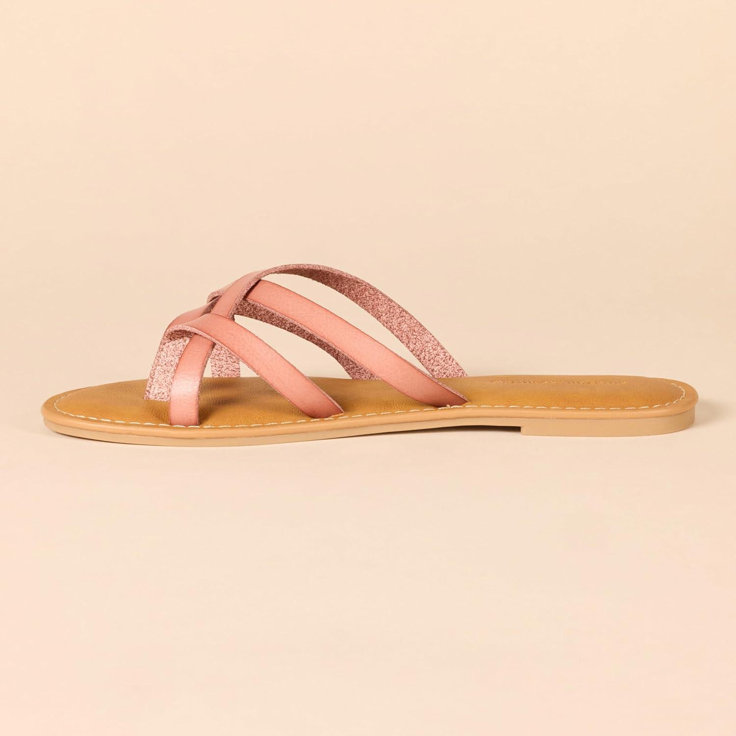 Amazon Essentials Women’s Strappy Slide Flat Sandal(Dusty Rose)