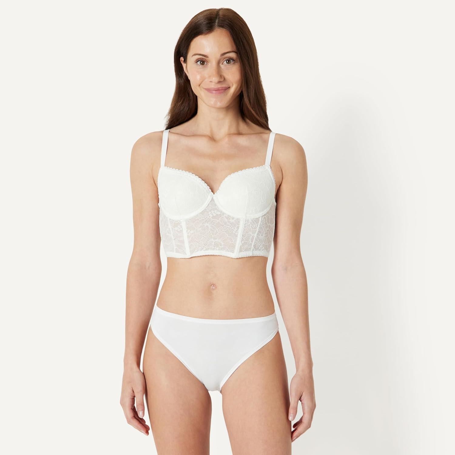imageAmazon Essentials Womens Stretch All Over Lace Longline Bustier CorsetWhite