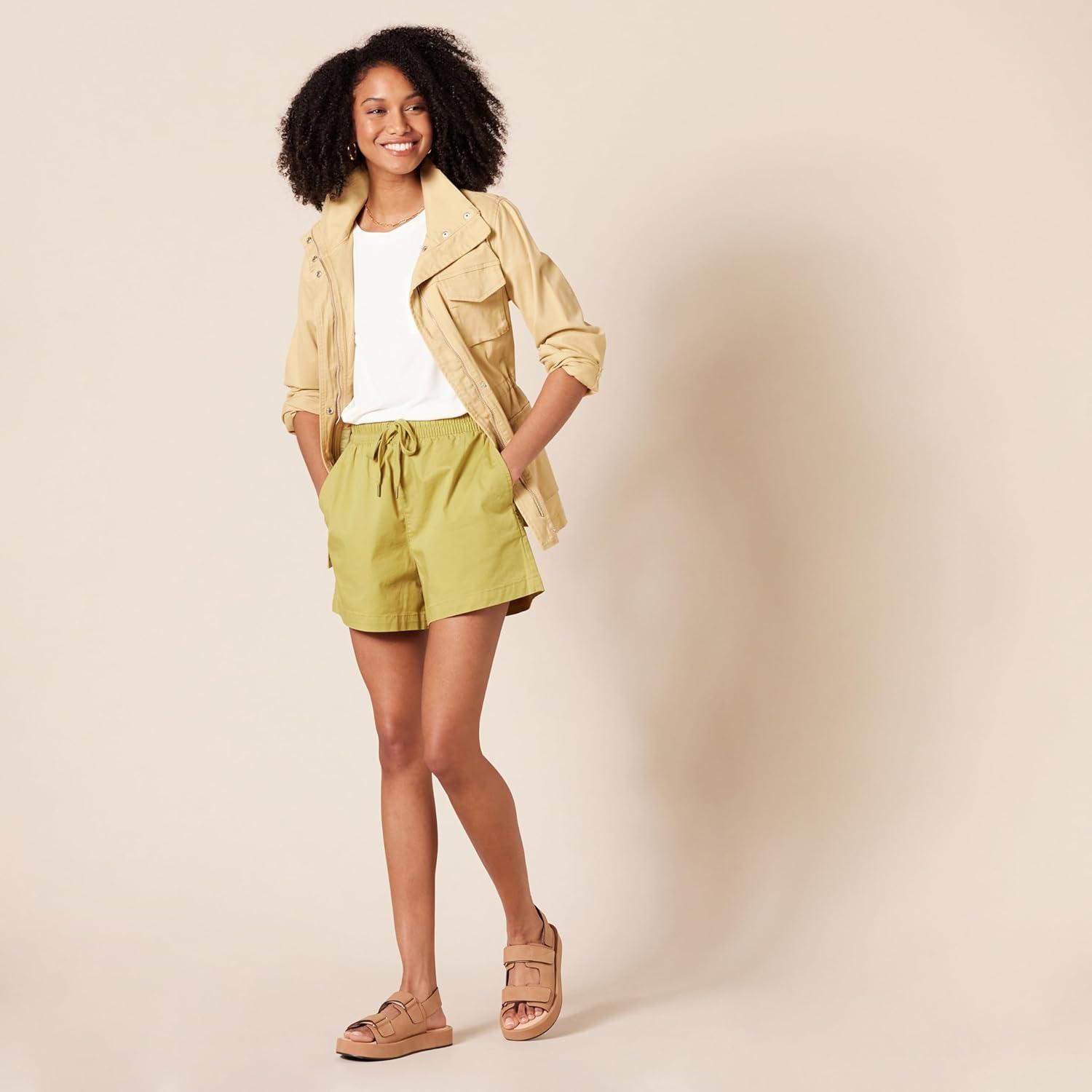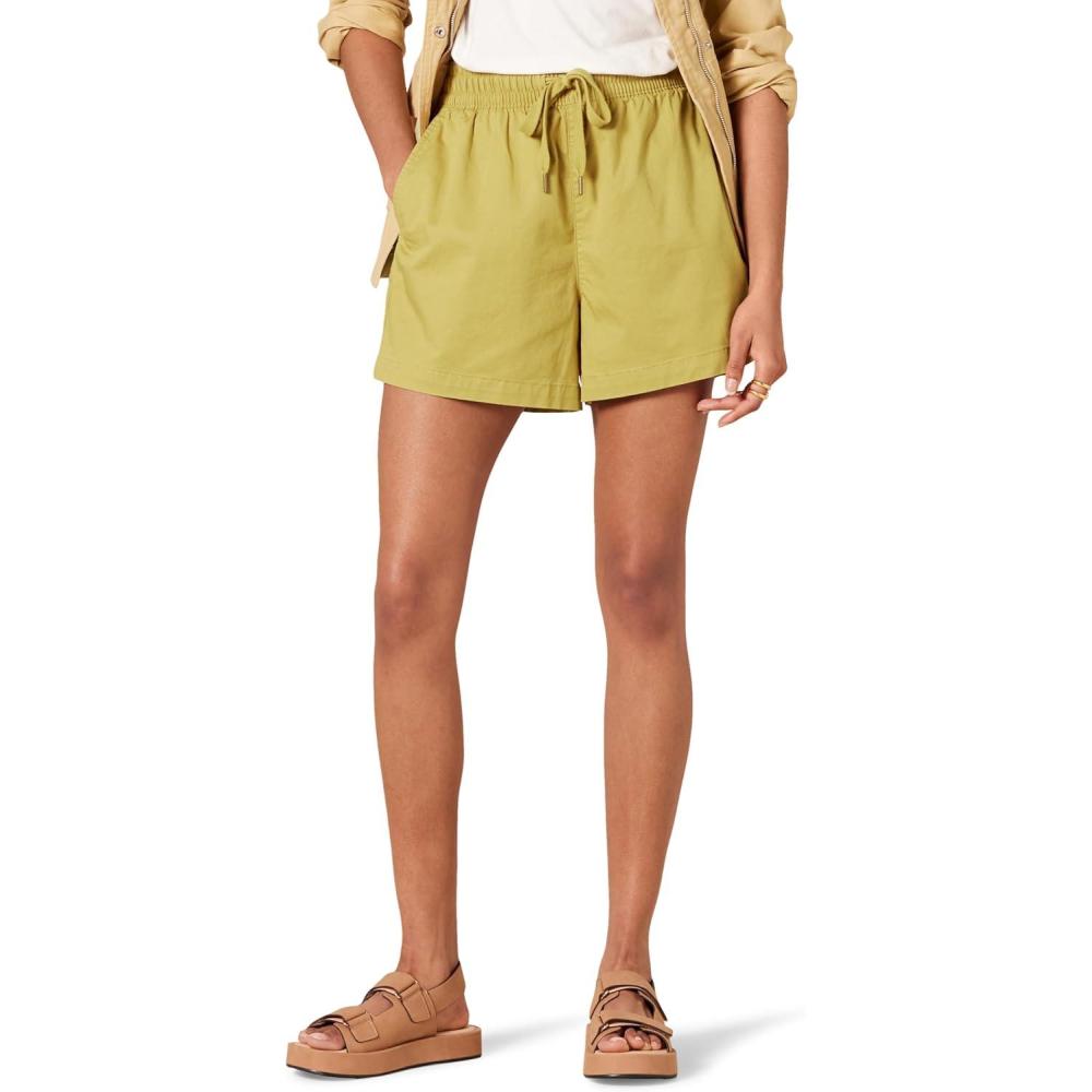 Amazon Essentials Women’s Stretch Cotton Mid-Rise Pull-On Relaxed-Fit Shorts(Dark Yellow)