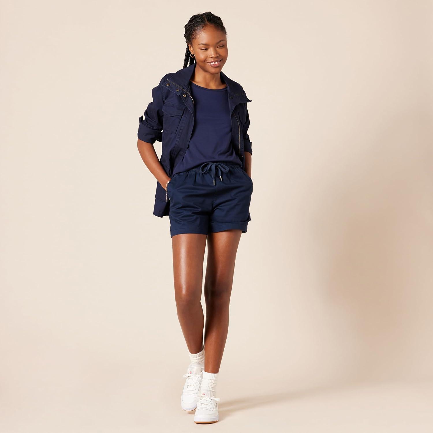 Amazon Essentials Women’s Stretch Cotton Mid-Rise Pull-On Relaxed-Fit Shorts(Navy)