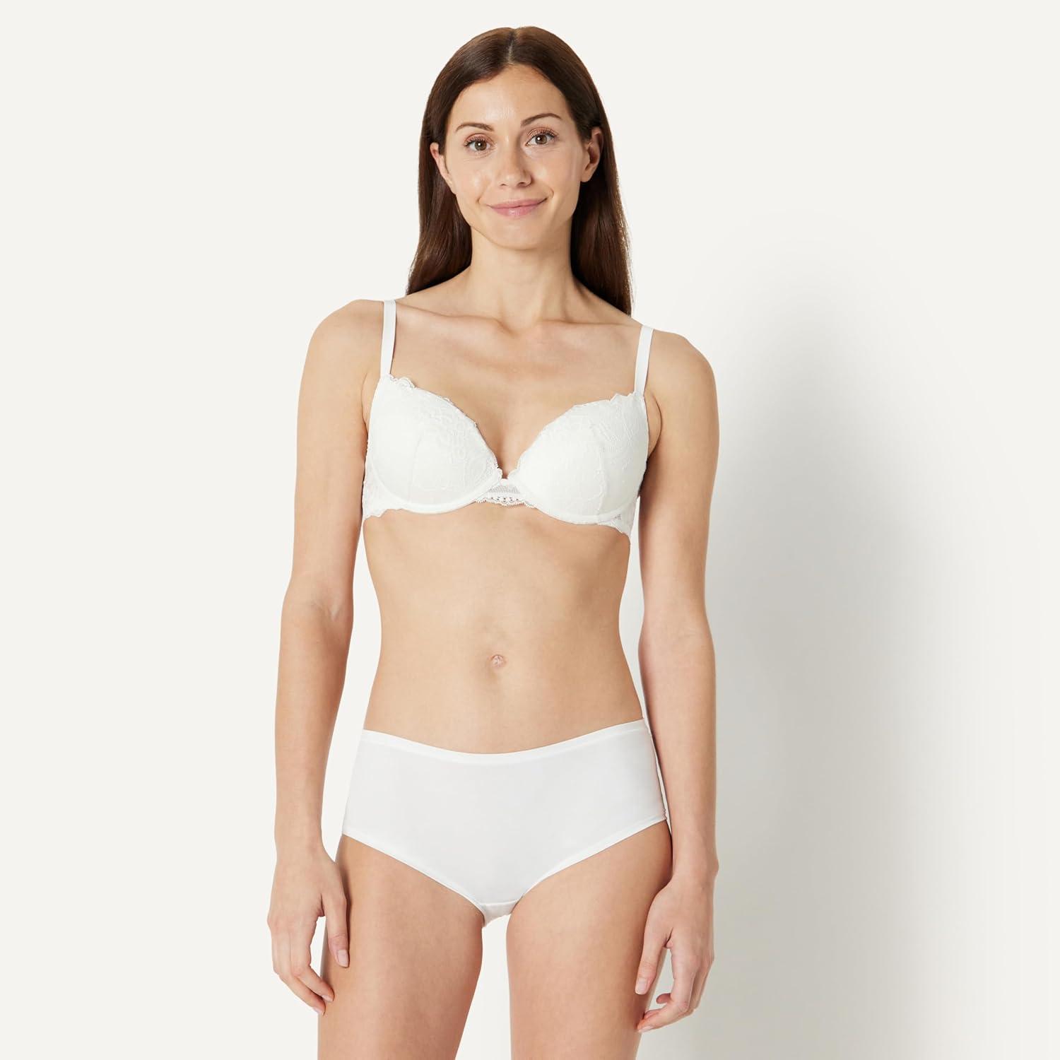 Amazon Essentials Womens Stretch Galloon Lace Push Up Wired Bra(Washed Bronze/White)