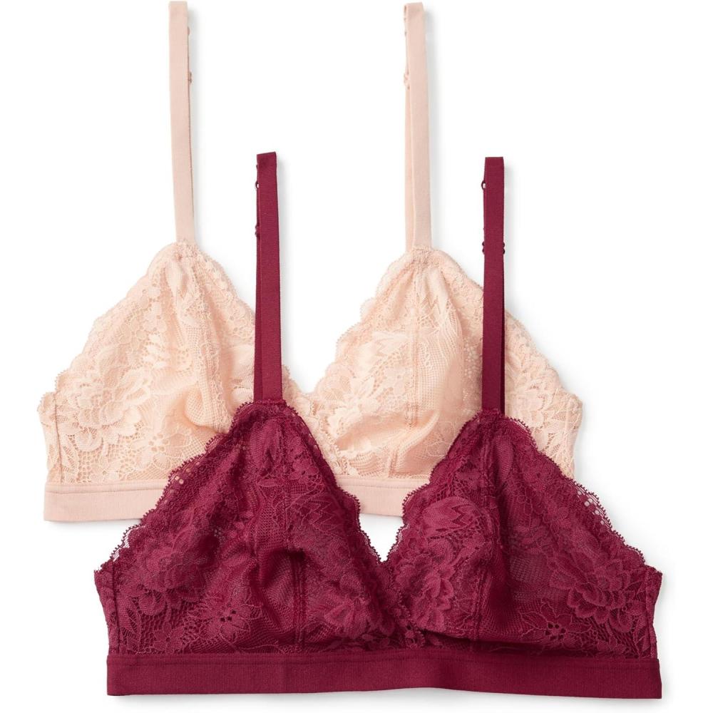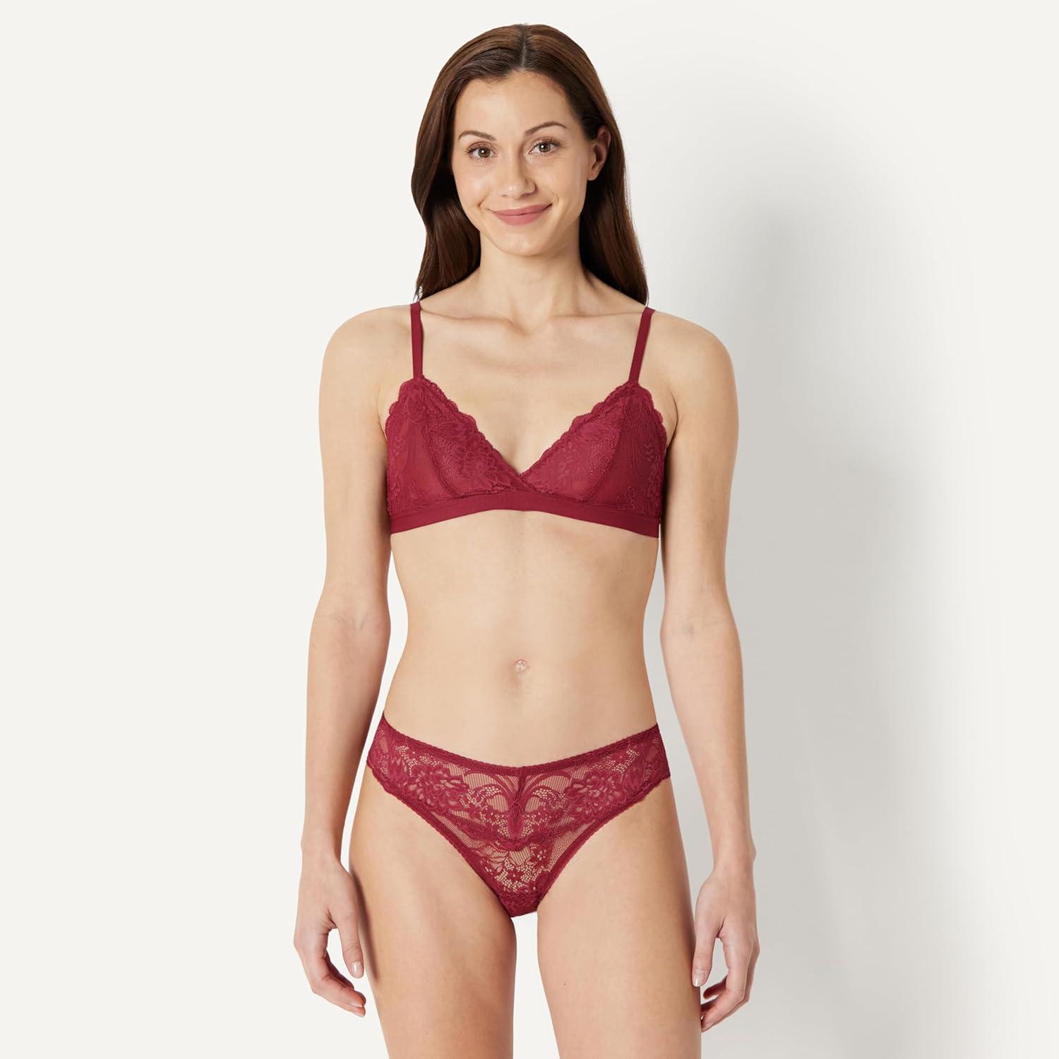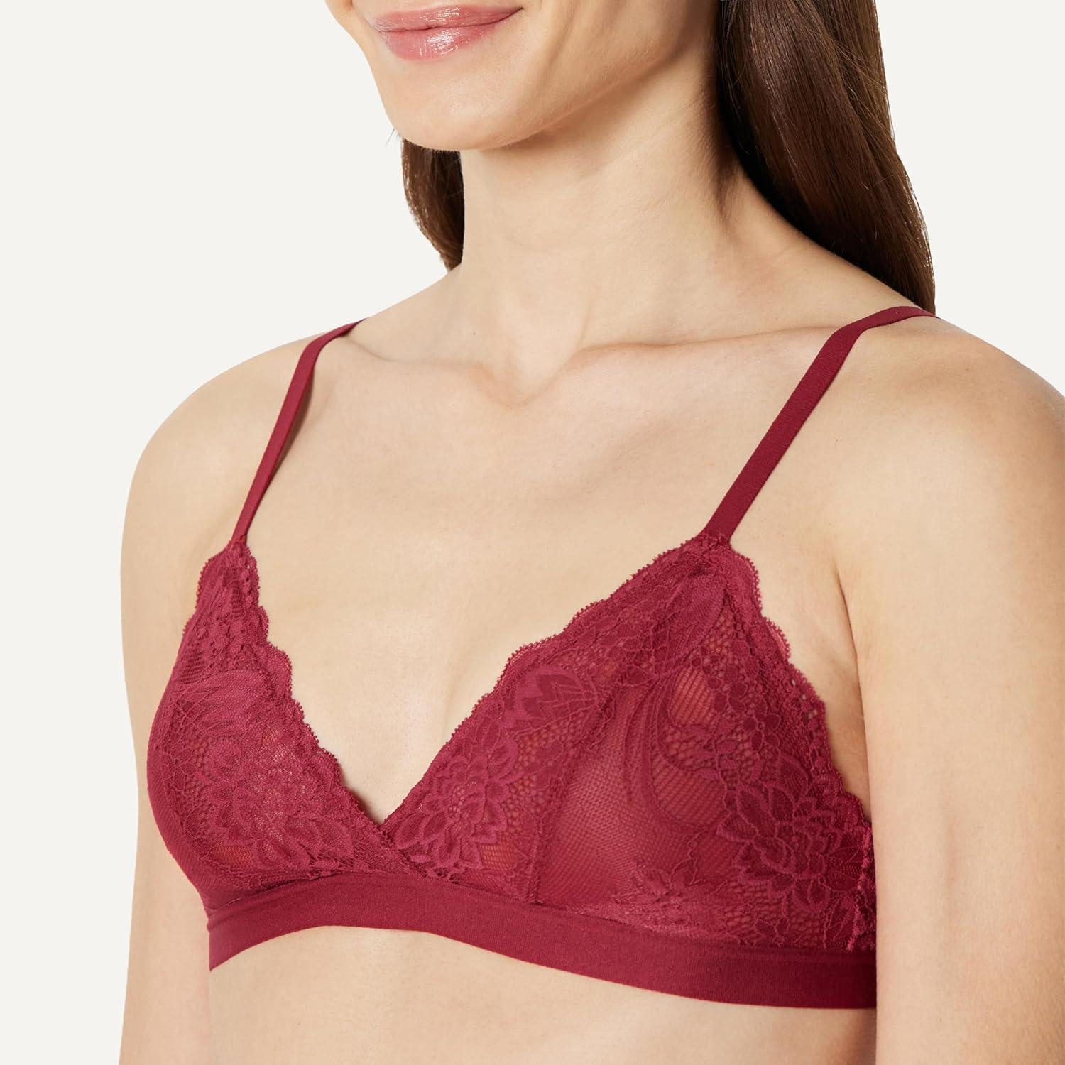 Amazon Essentials Womens Stretch Galloon Lace Unlined Triangle Bra(Burgundy/Soft Petal)