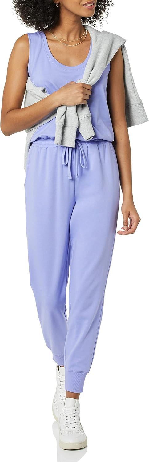 An Amazon Brand – Relax and lounge in this all-in-one jumpsuit featuring a sleeveless, scooped neckline top and a full length jogger with a drawcord waist