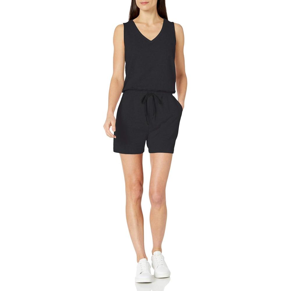 Amazon Essentials Women’s Studio Terry Romper(Black)