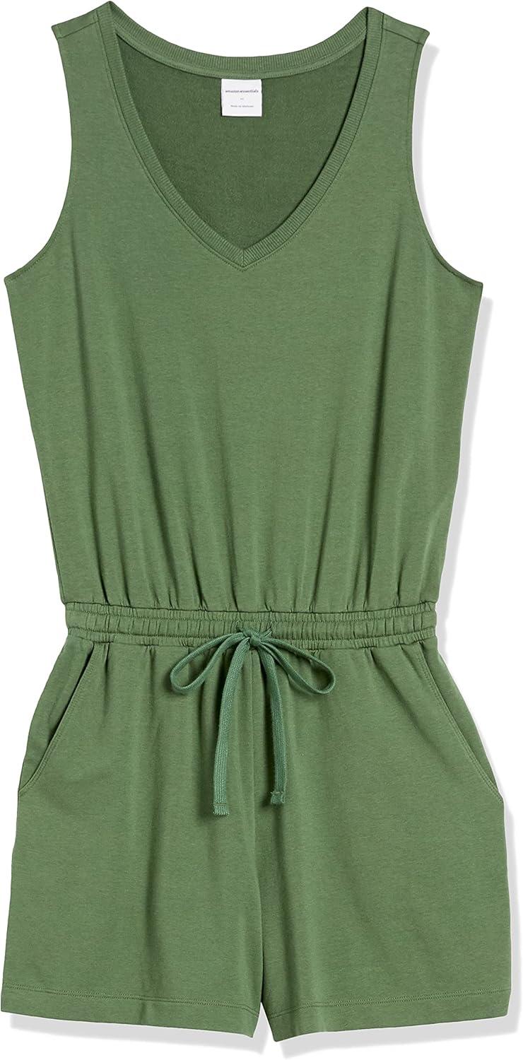 Amazon Essentials Women’s Studio Terry Romper(Military Green)