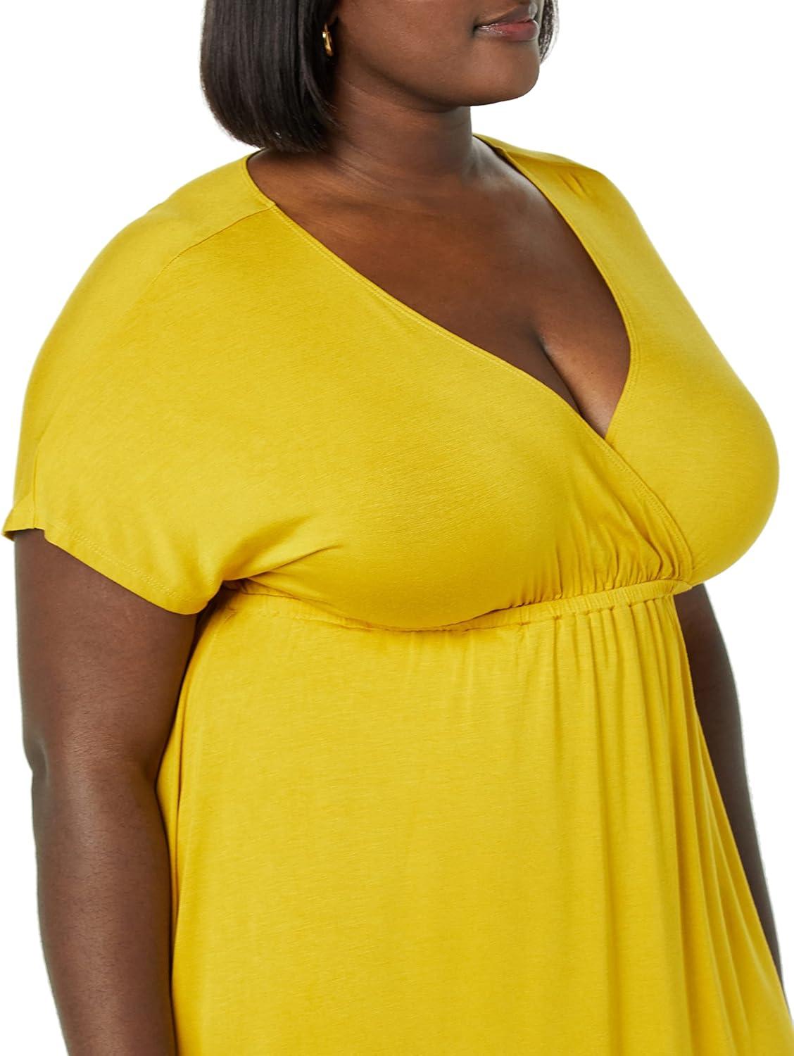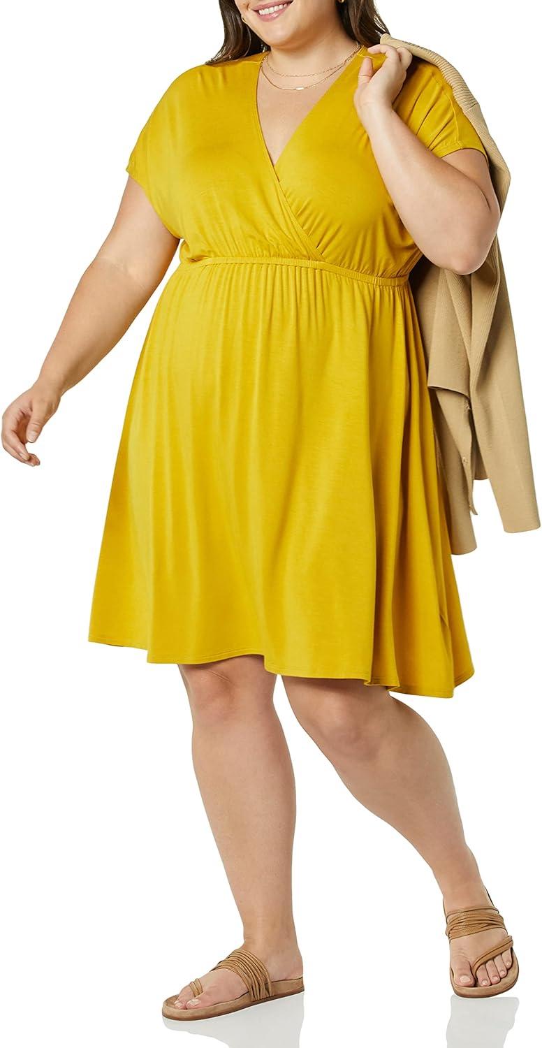 Amazon Essentials Women’s Surplice Dress (Available in Plus Size)(Dark Golden Yellow)