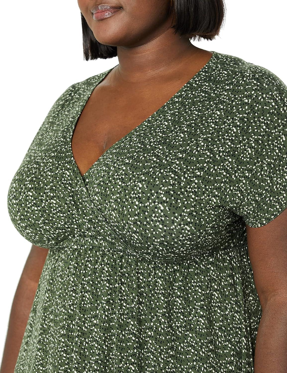 Amazon Essentials Women's Surplice Dress (Available in Plus Size)(Olive Dots)