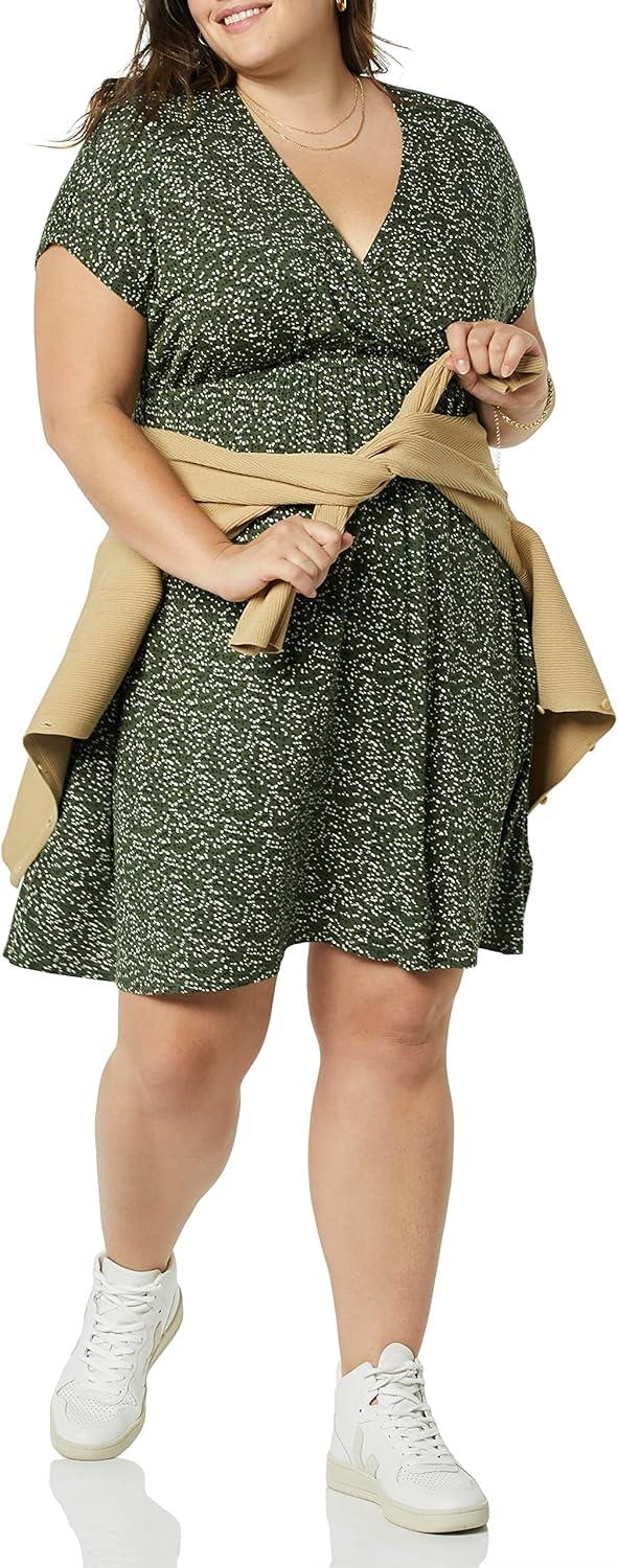 Amazon Essentials Women’s Surplice Dress (Available in Plus Size)(Olive Dots)