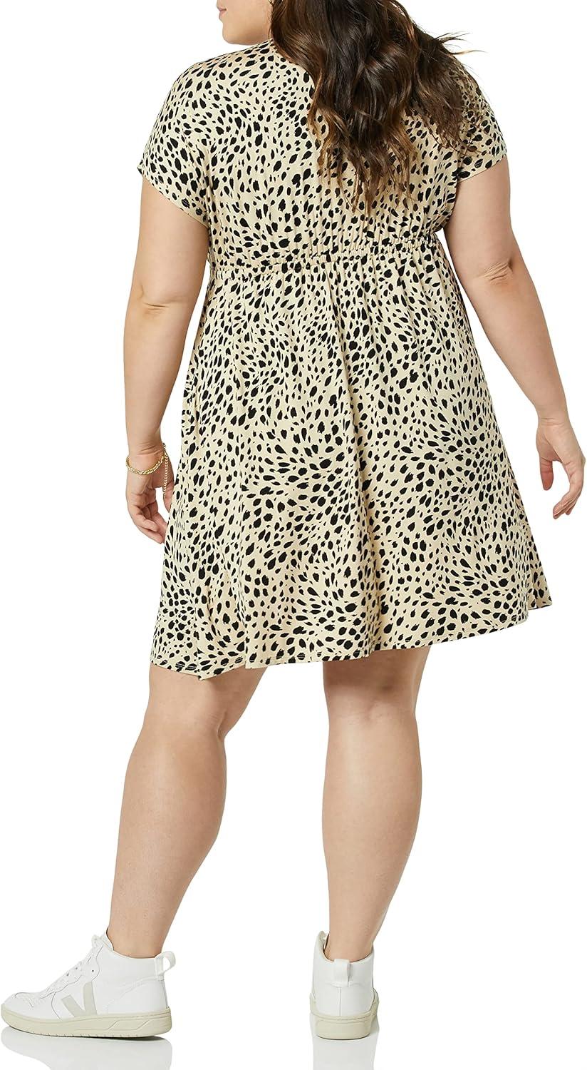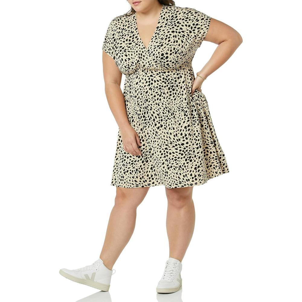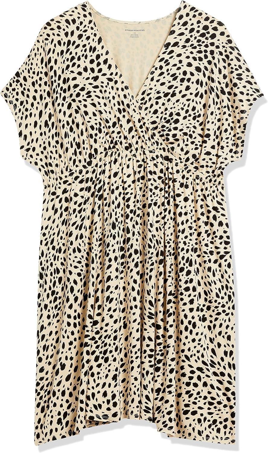 Amazon Essentials Women's Surplice Dress (Available in Plus Size)(Tan Animal Print)