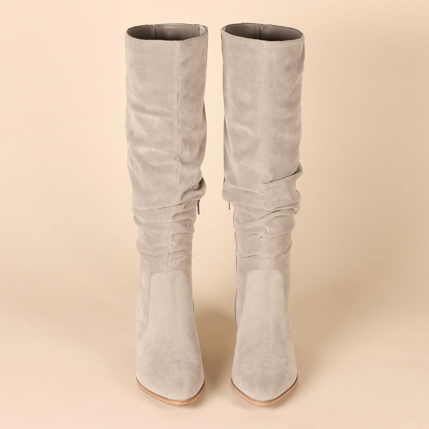 Amazon Essentials Women's Tall Block Heel Boots(Light Grey)