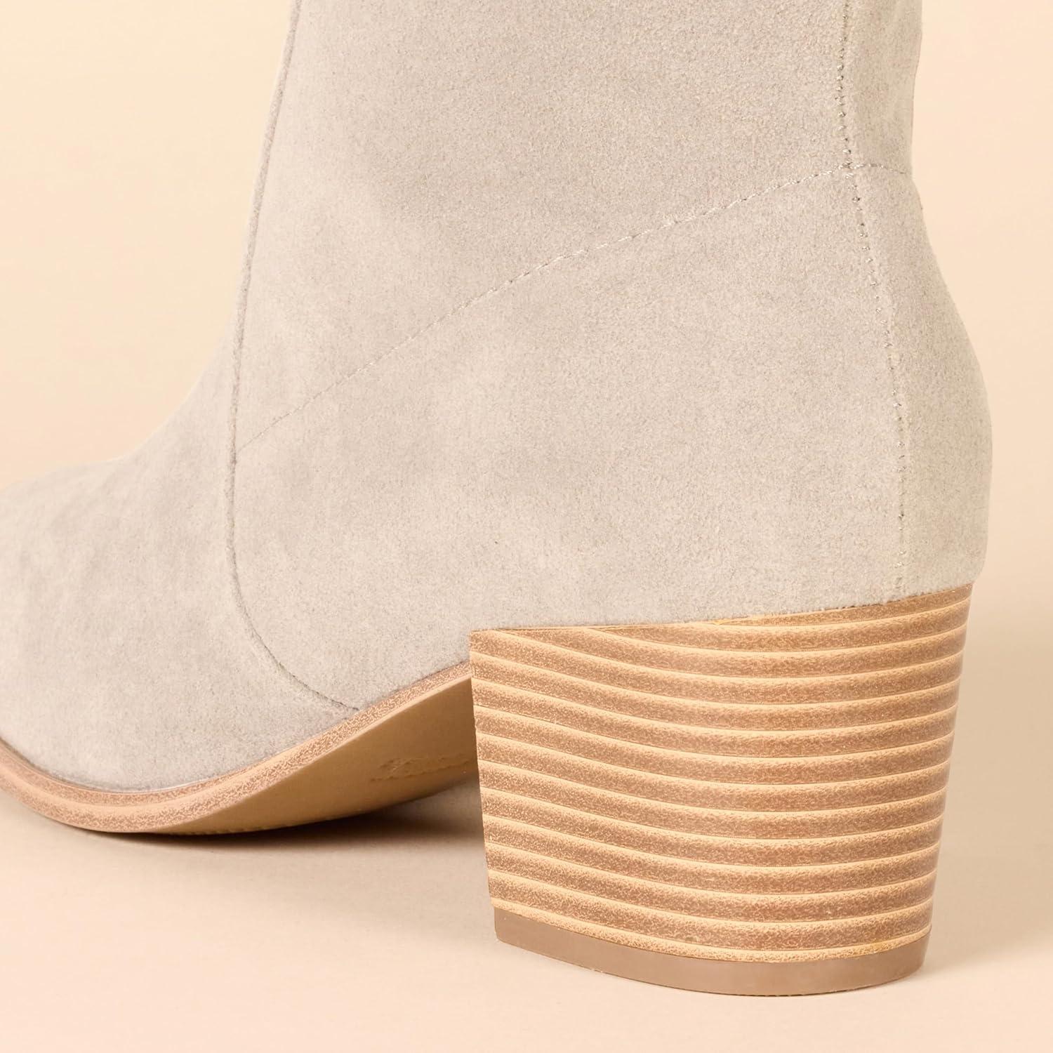Amazon Essentials Women’s Tall Block Heel Boots(Light Grey)