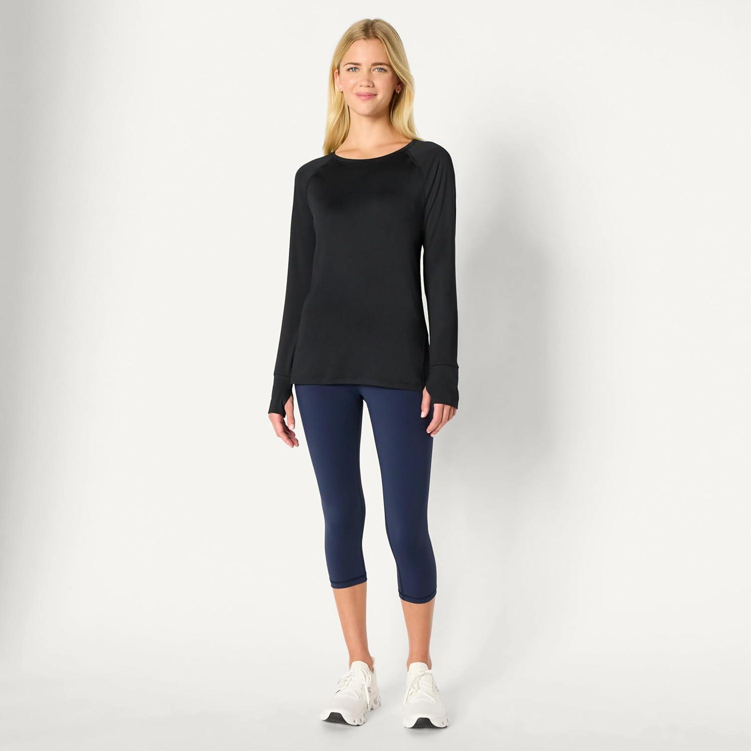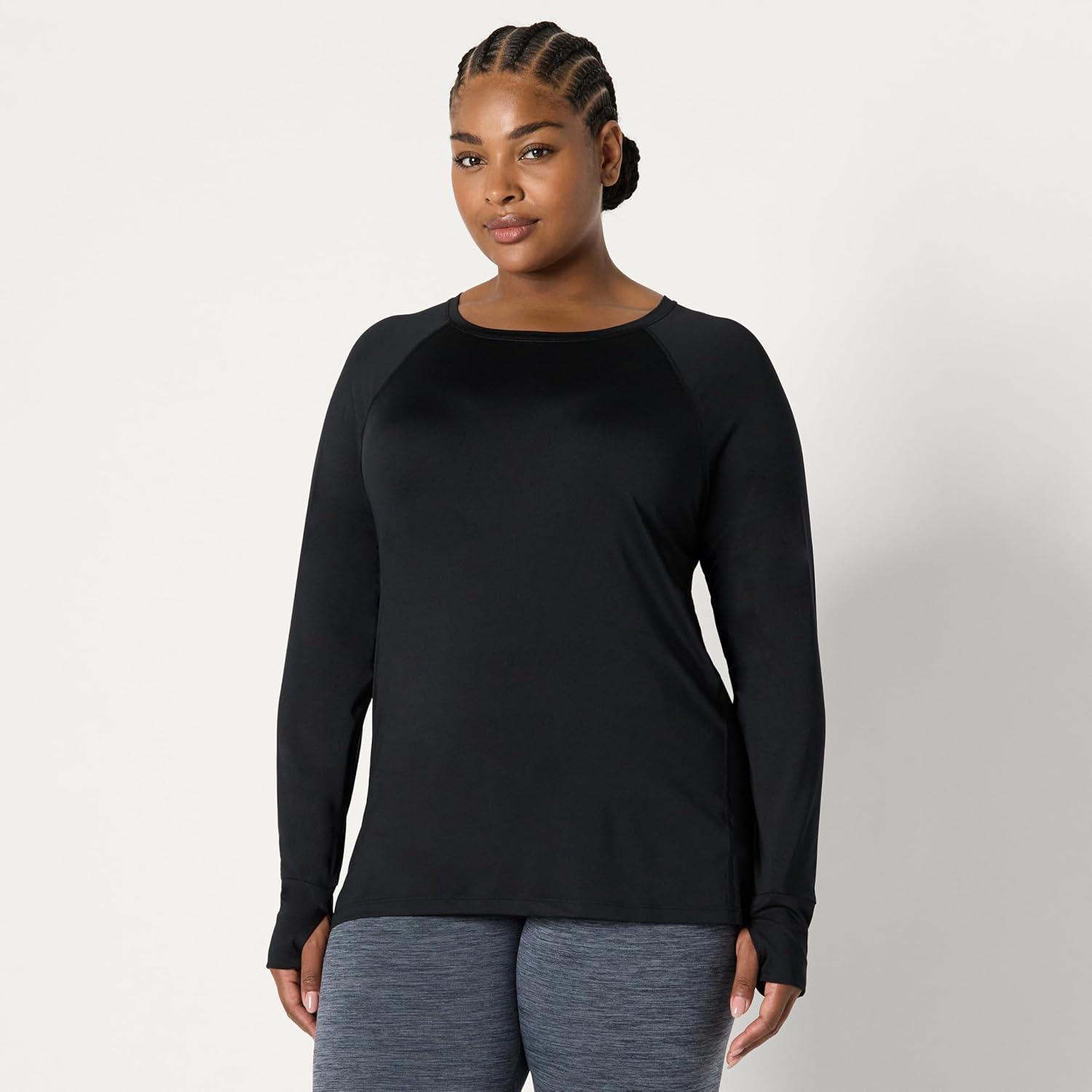 Amazon Essentials Women’s Tech Stretch Long-Sleeve T-Shirt(Black)
