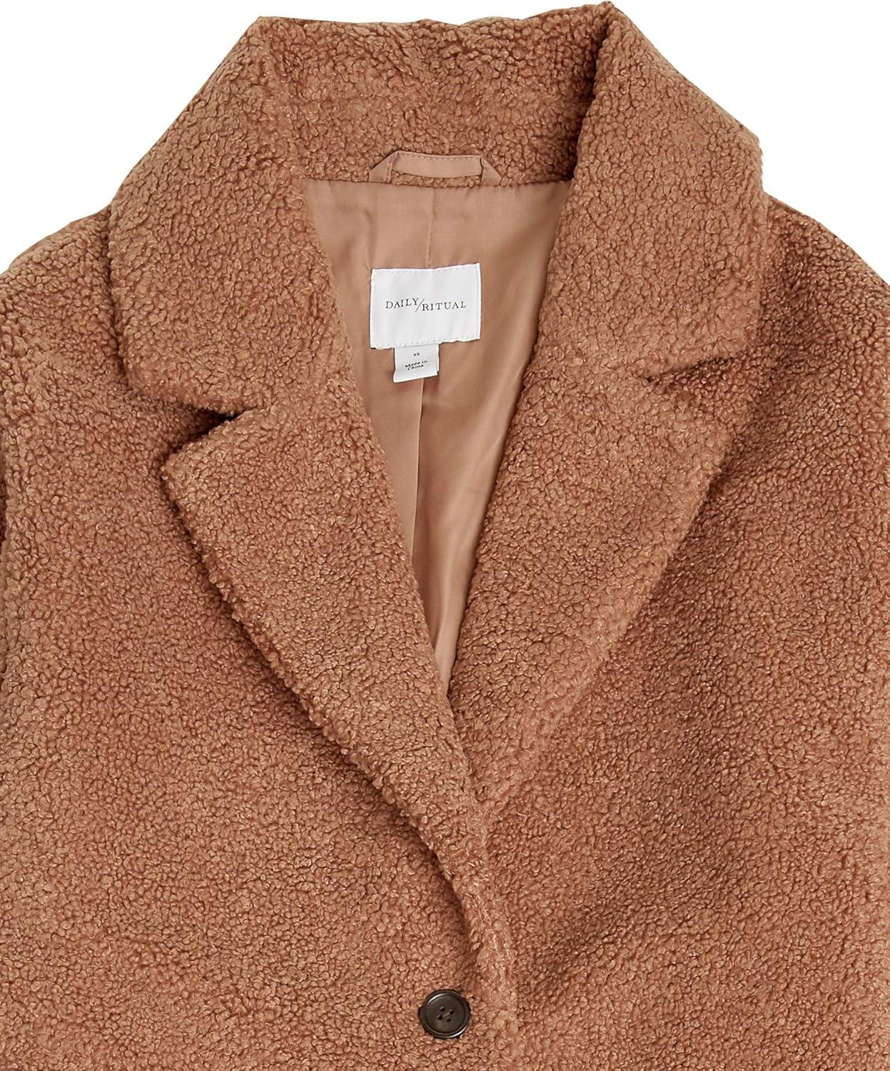 Amazon Essentials Women’s Teddy Bear Fleece Oversized-Fit Lapel Jacket (Previously Daily Ritual)(Camel)