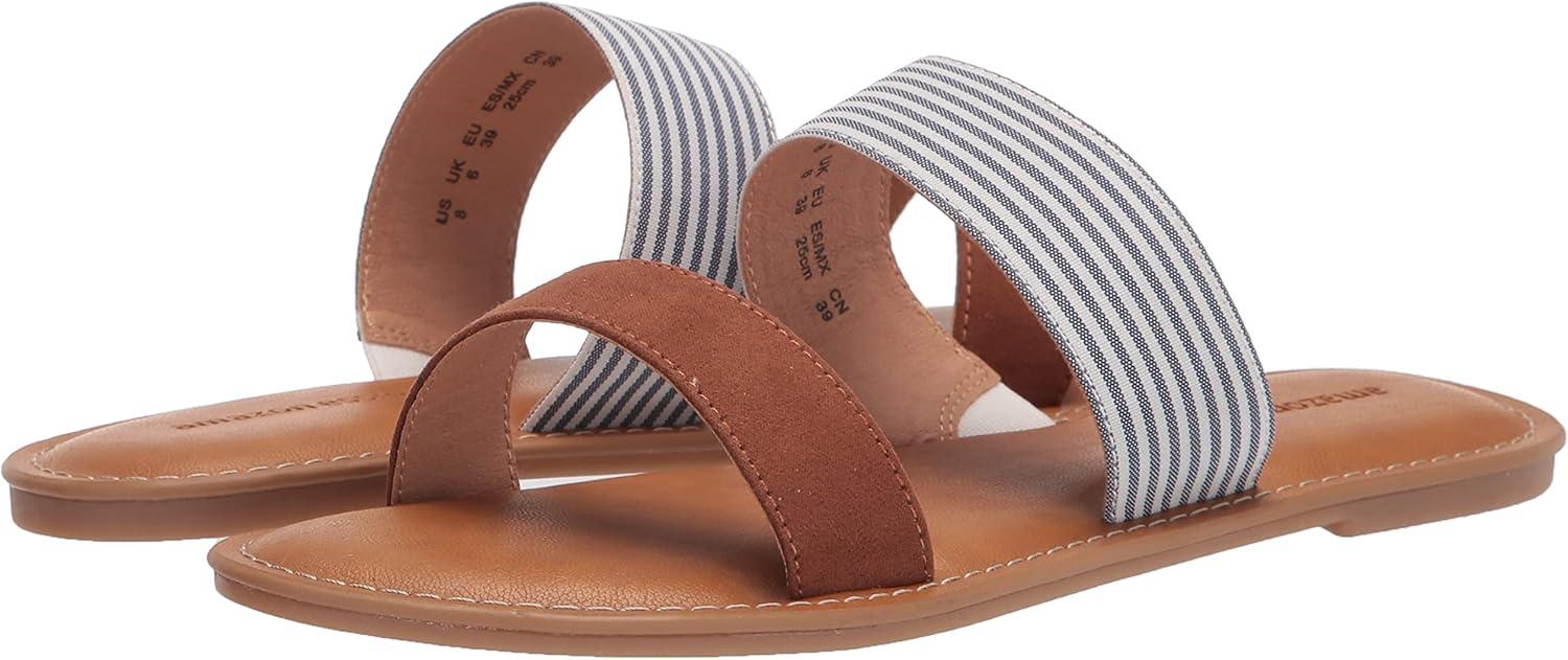 Amazon Essentials Women’s Two Band Slip On Open Toe Sandal(Tan)