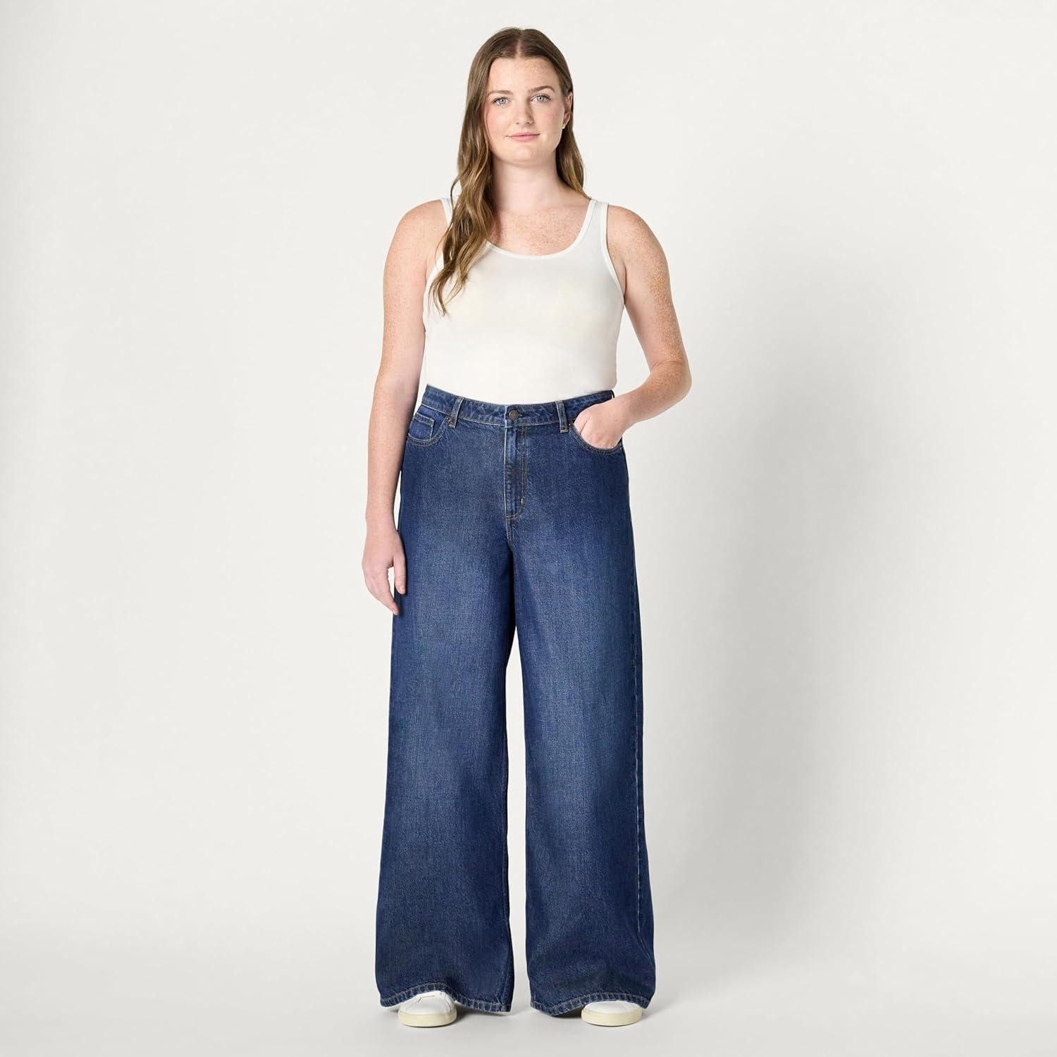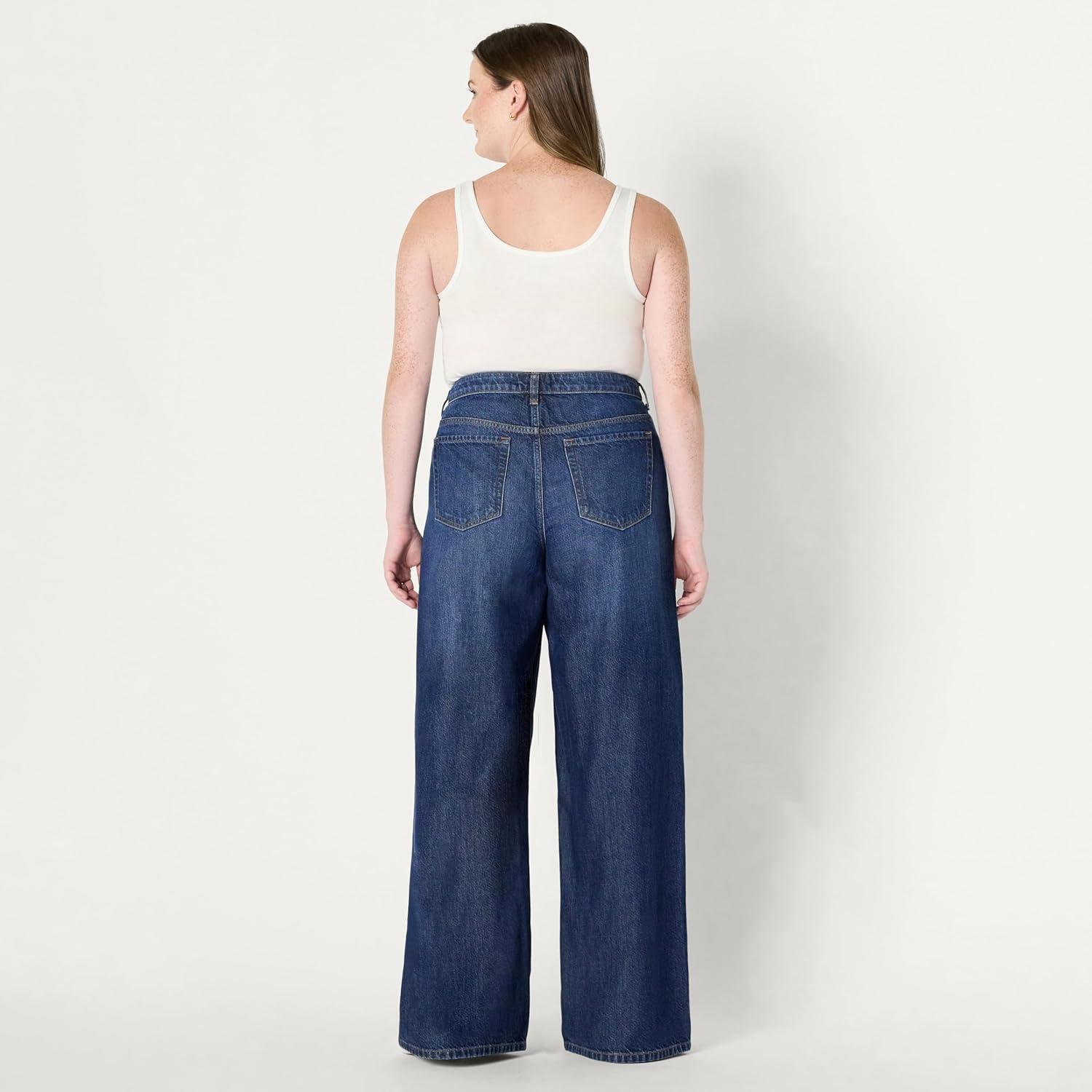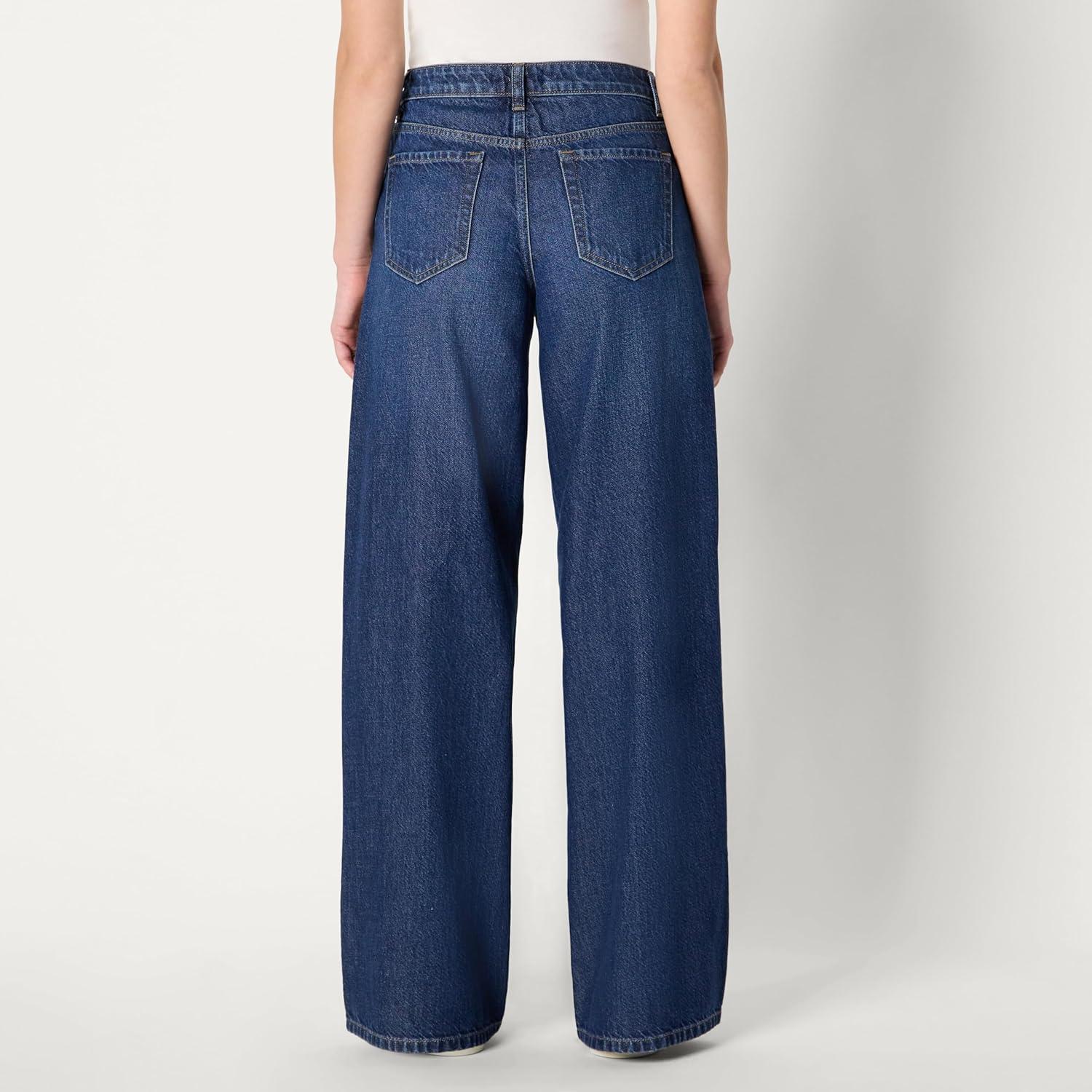 Amazon Essentials Women’s Ultra Soft Mid-Rise Wide Leg Jean(Dark Shadow Wash)
