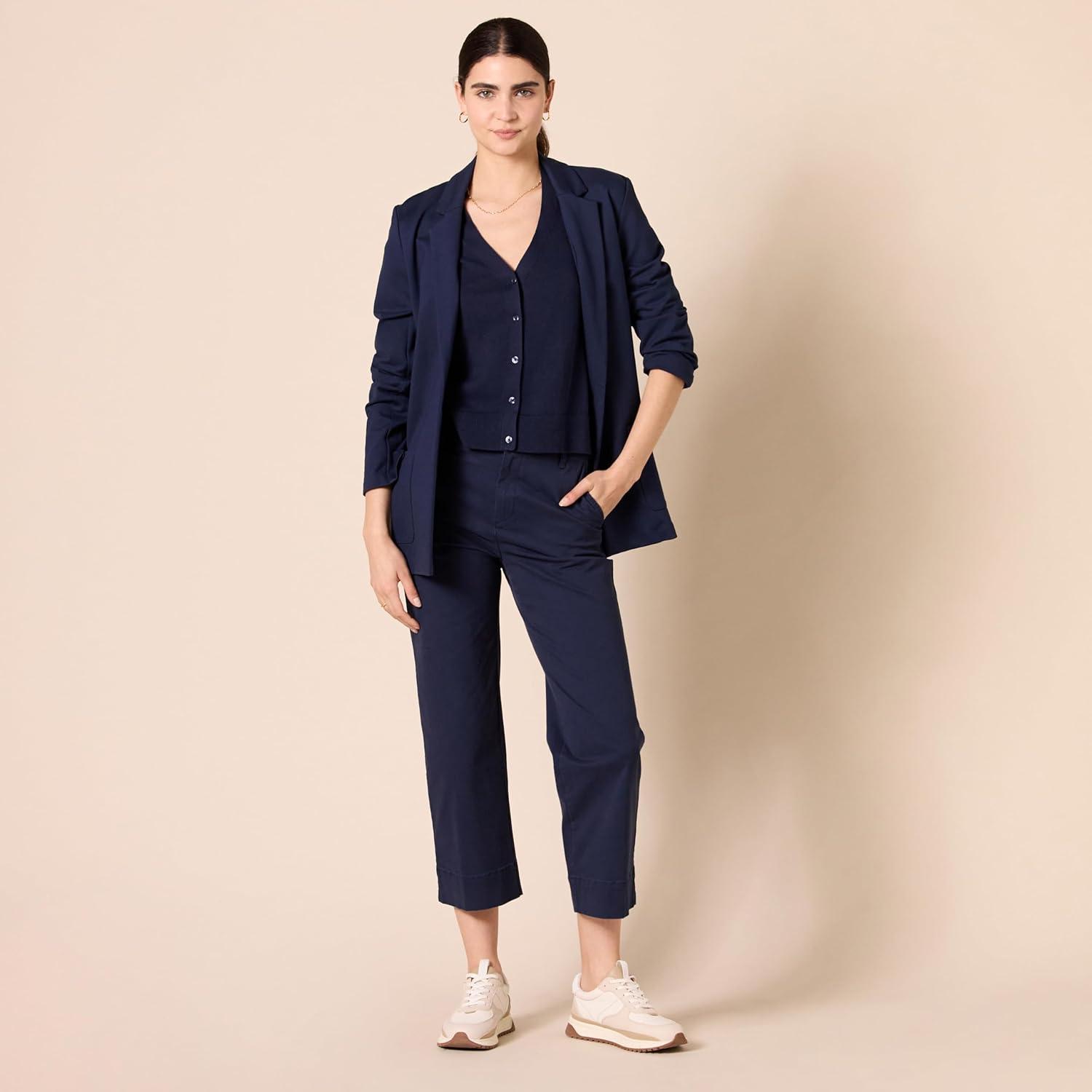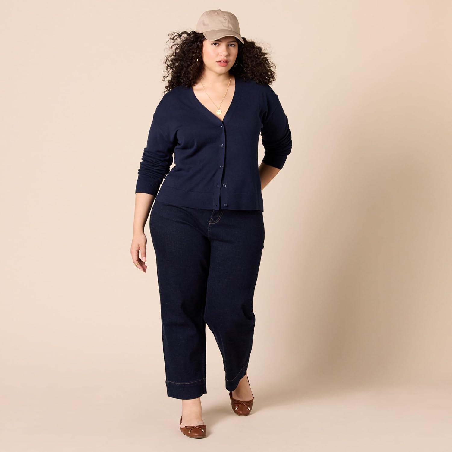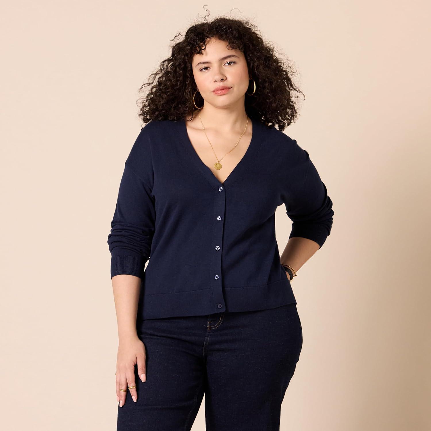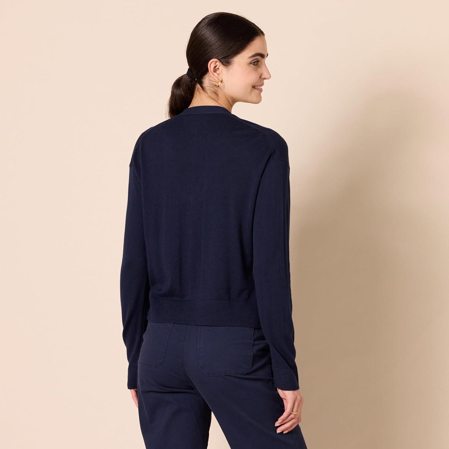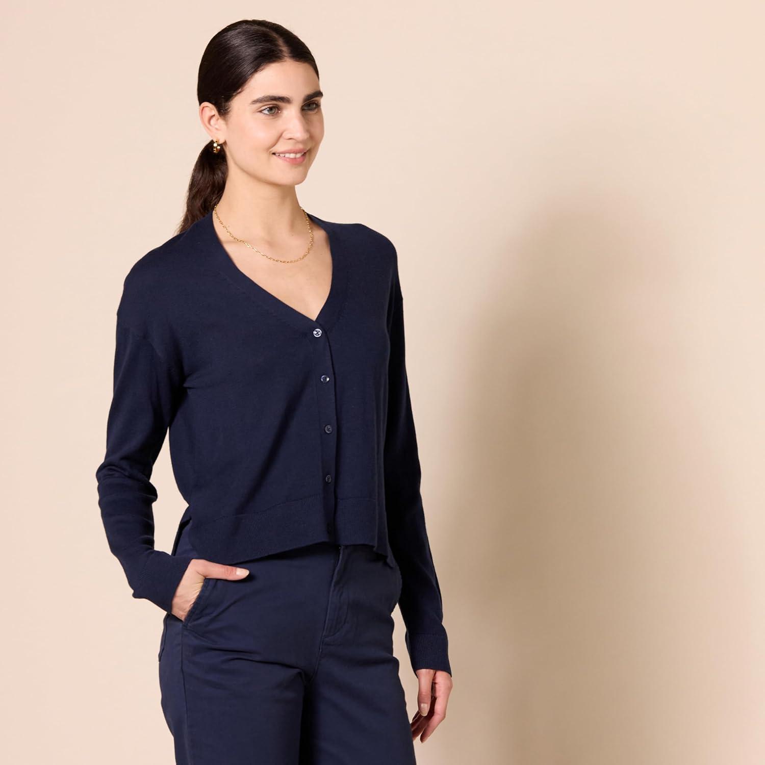 Amazon Essentials Women’s V-Neck Lightweight Cropped Relaxed-Fit Cardigan Sweater(Navy)