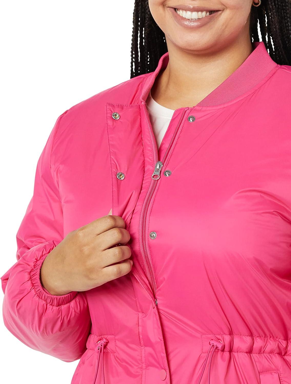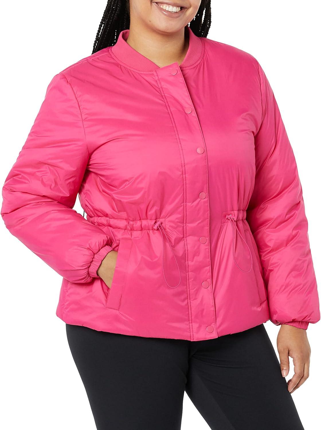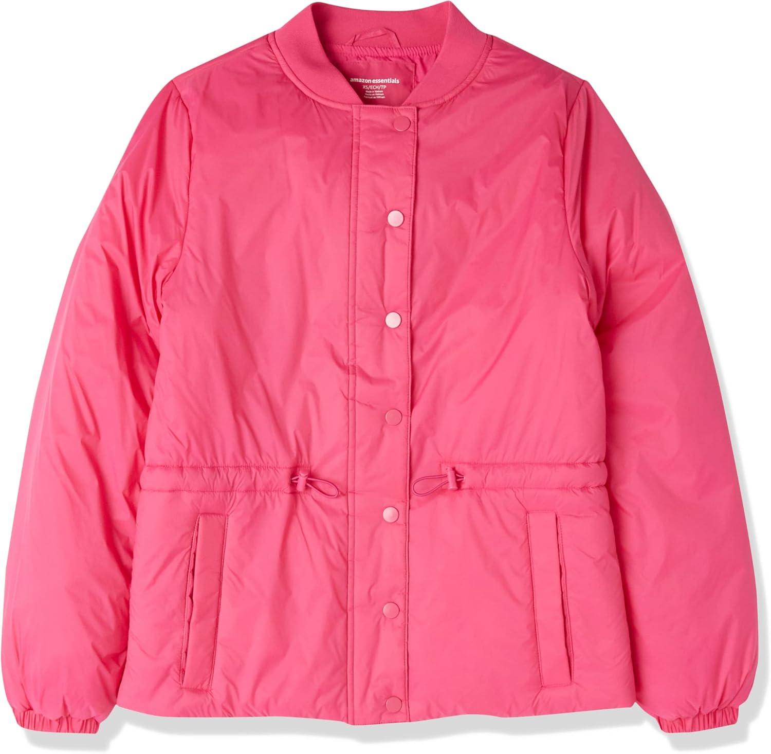 Amazon Essentials Women’s Waist Padded Bomber Jacket(Hot Pink)