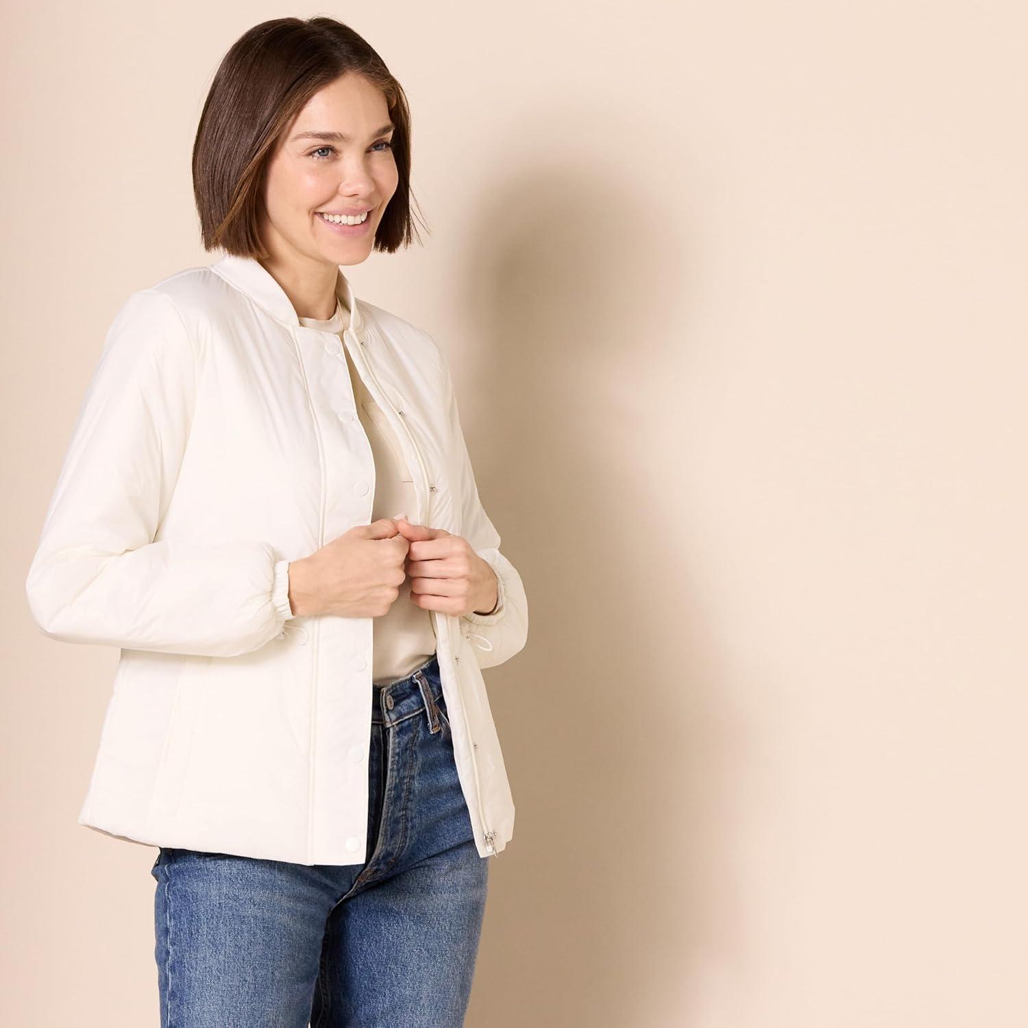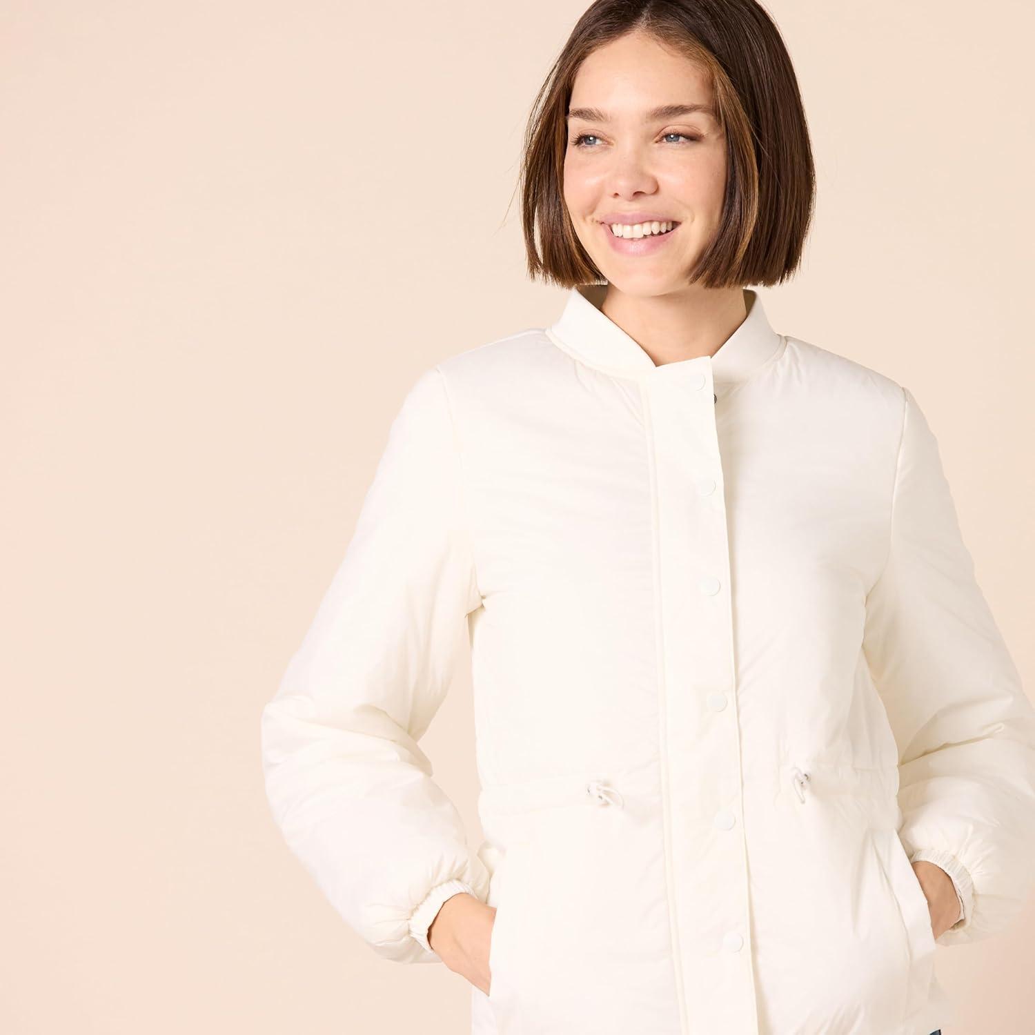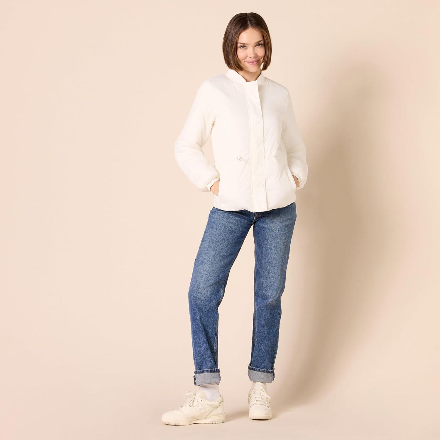 Amazon Essentials Women’s Waist Padded Bomber Jacket(Ivory)