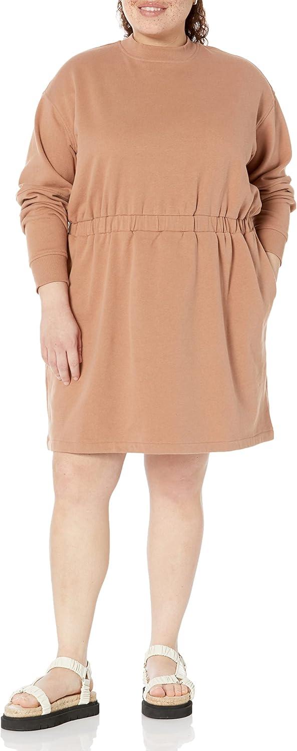 Amazon Essentials Women’s Waisted Sweatshirt Dress (Available in Plus Size)(Light Brown)