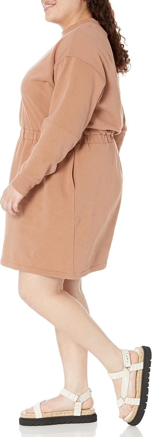 Amazon Essentials Women's Waisted Sweatshirt Dress (Available in Plus Size)(Light Brown)