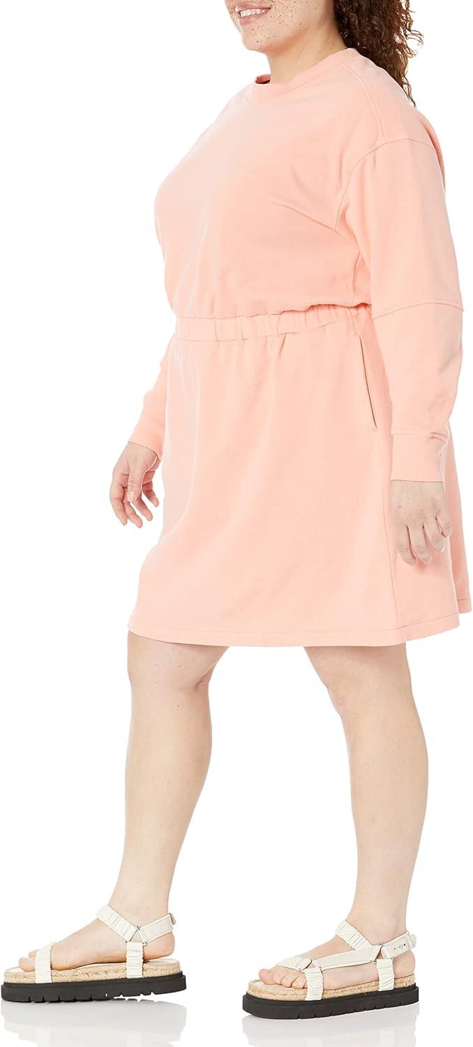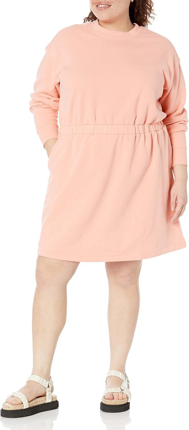 Amazon Essentials Women's Waisted Sweatshirt Dress (Available in Plus Size)(Peach)