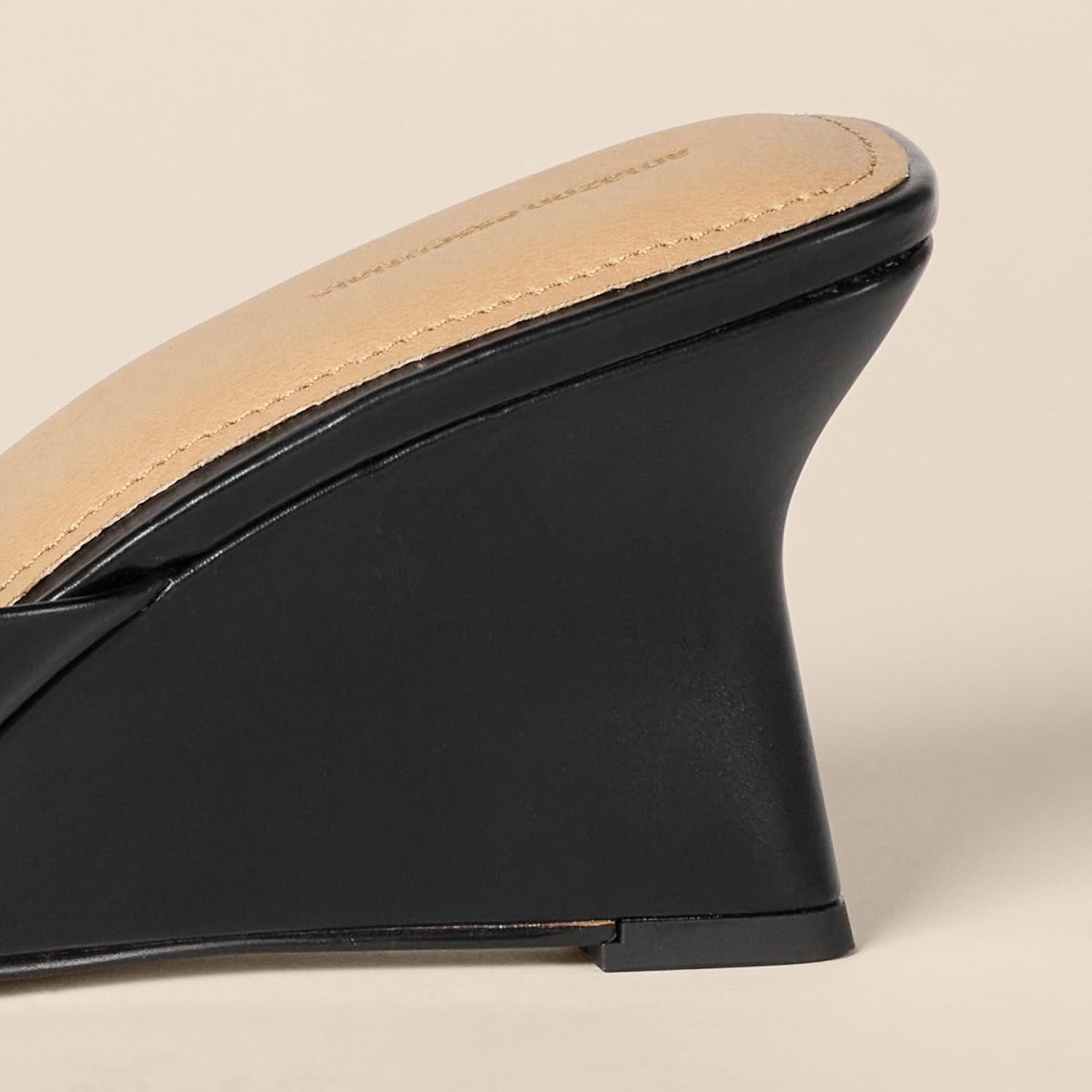 Amazon Essentials Women’s Wedge Sandals(Black Faux Leather)