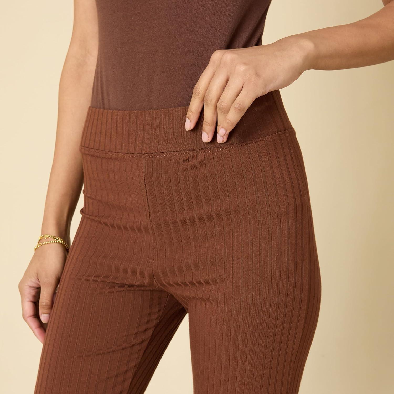 Amazon Essentials Women’s Wide Rib Flared Ankle Pant (Previously Daily Ritual)(Chocolate)