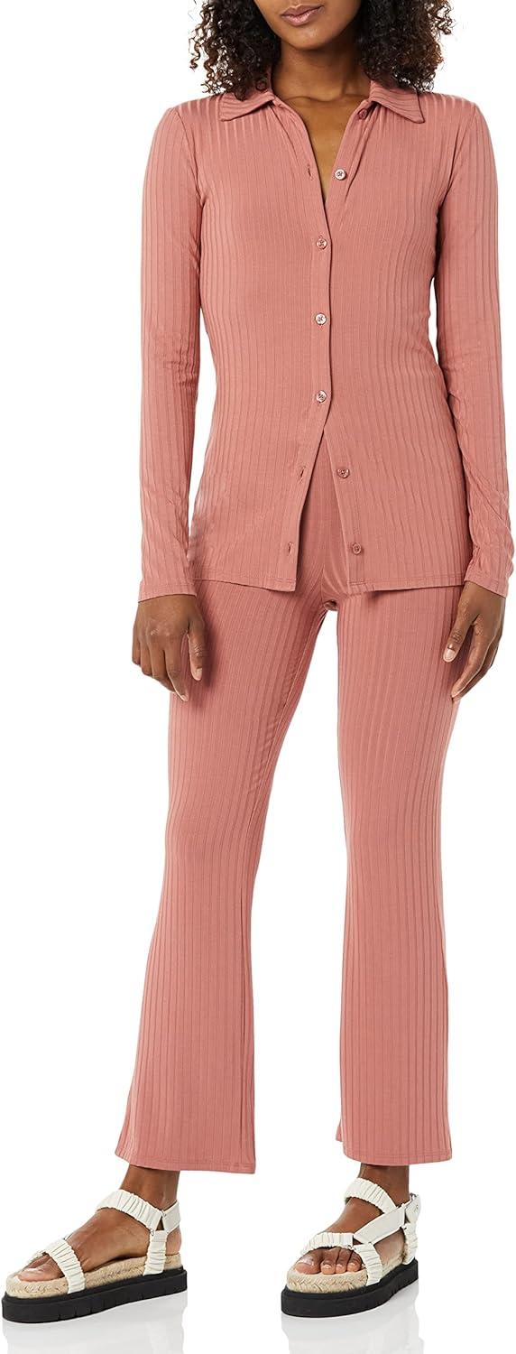 Amazon Essentials Women’s Wide Rib Flared Ankle Pant (Previously Daily Ritual)(Terracotta)