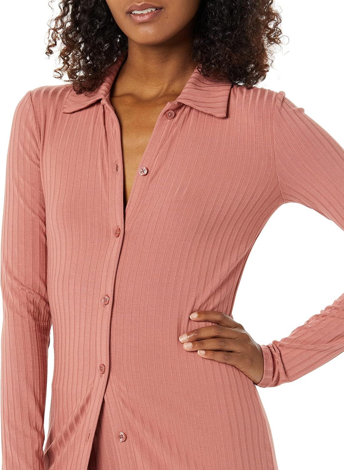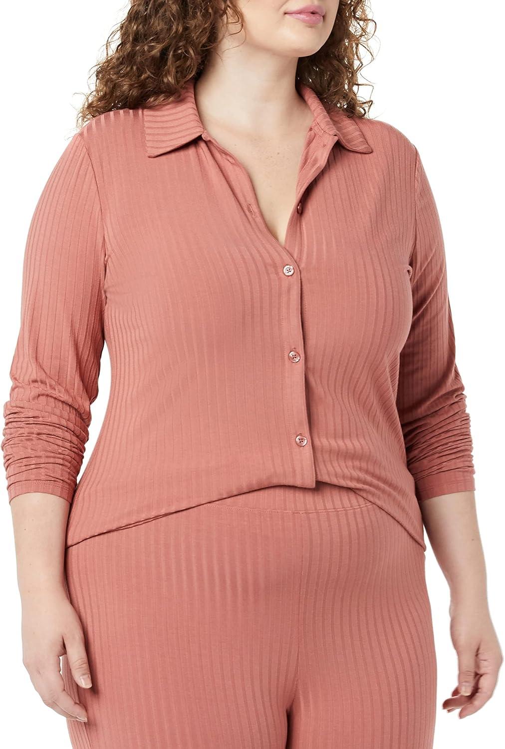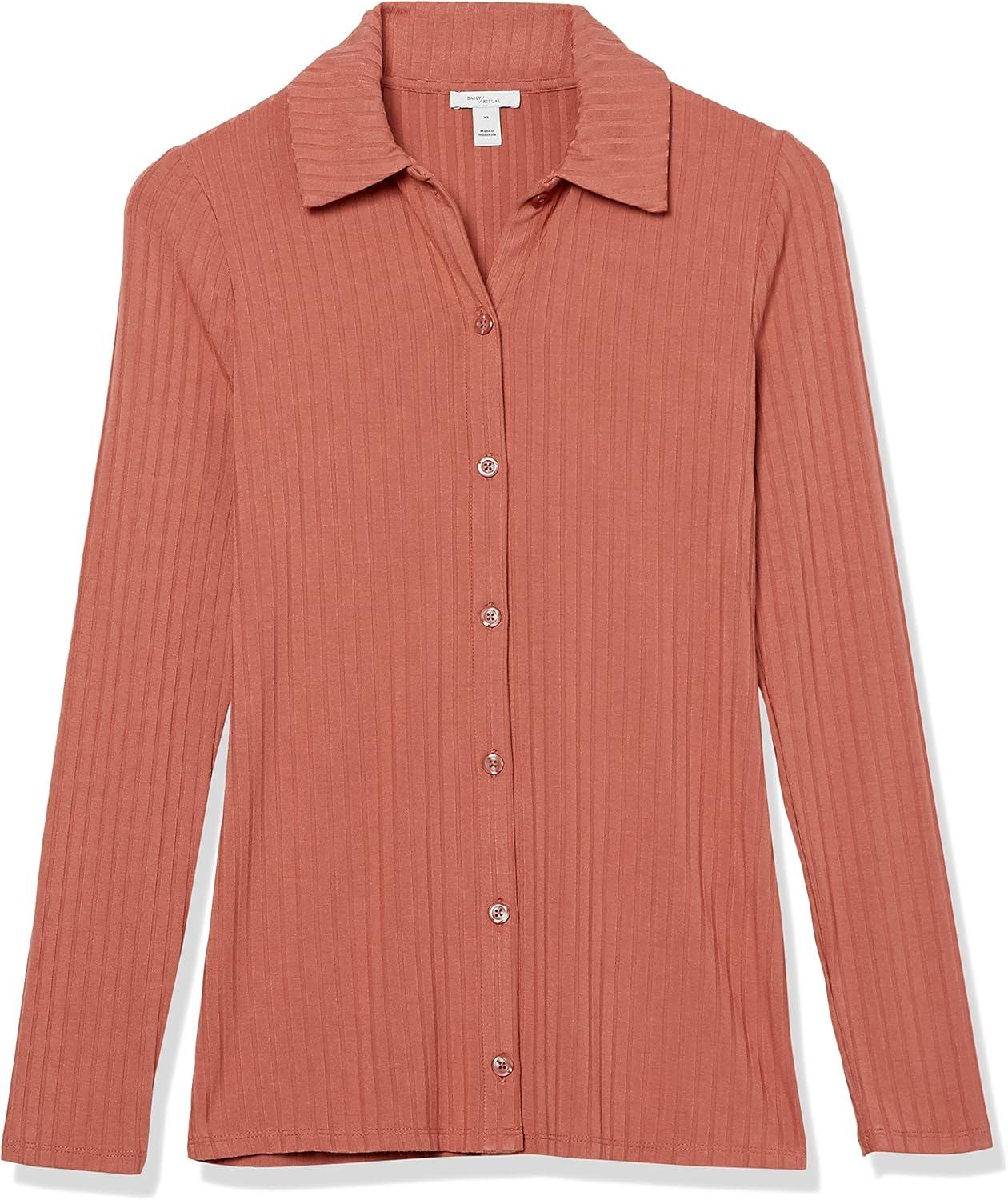 Amazon Essentials Women's Wide Rib Long Sleeve Button-up Collared Cardigan (Pants Sold Separately)(Terracotta)