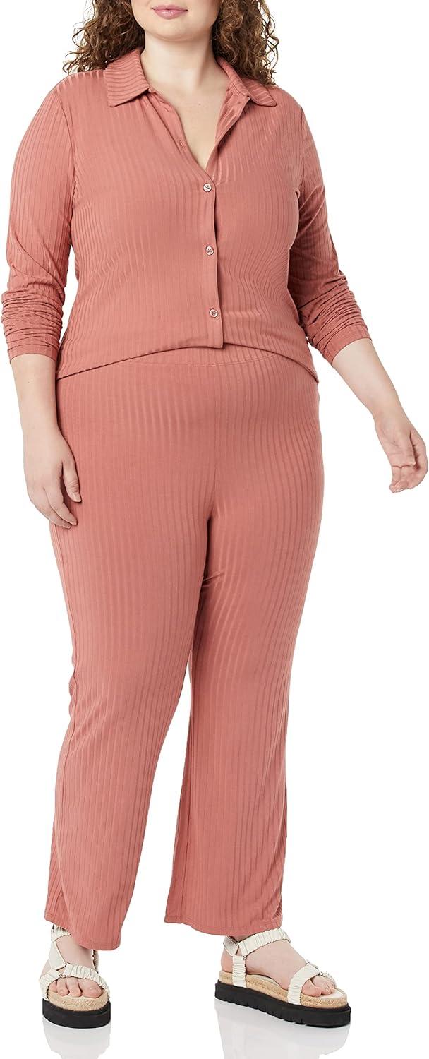 imageAmazon Essentials Womens Wide Rib Long Sleeve Buttonup Collared Cardigan Pants Sold SeparatelyTerracotta