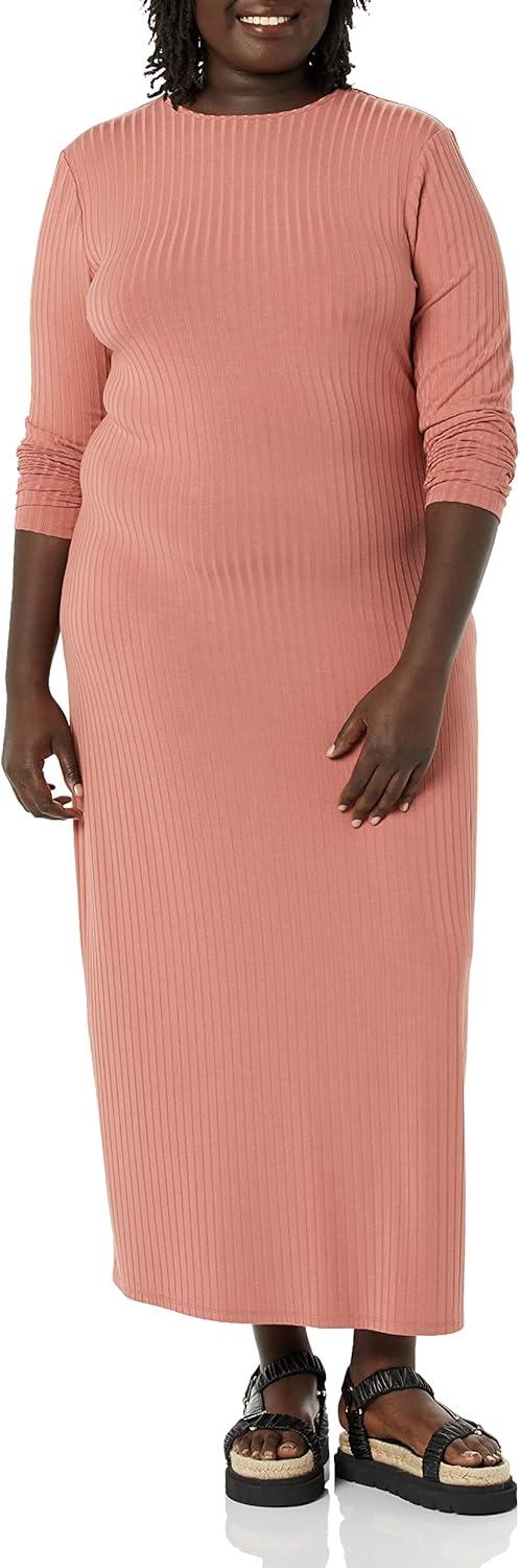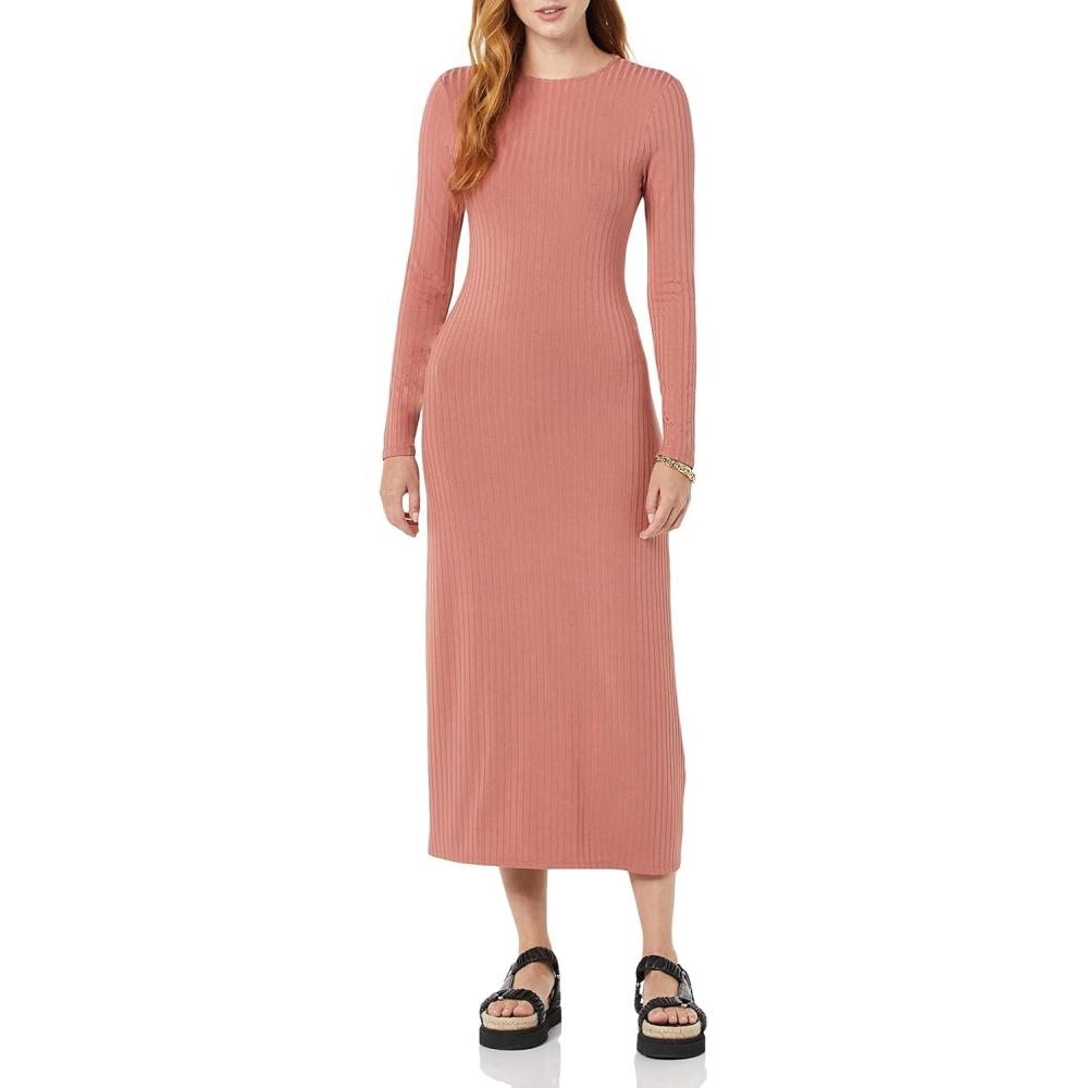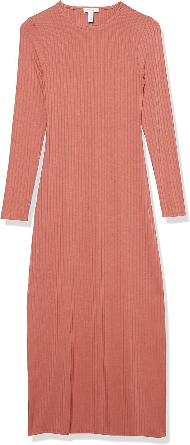 Amazon Essentials Women’s Wide Rib Open Back Long Sleeve Dress (Previously Daily Ritual)(Terracotta)