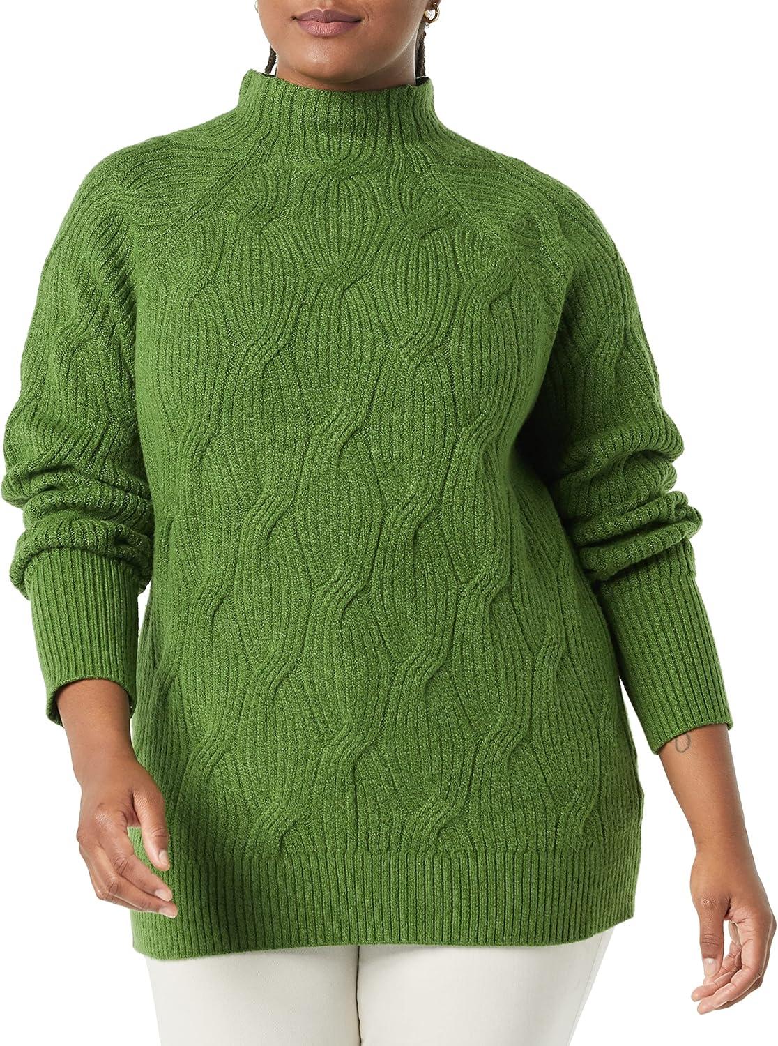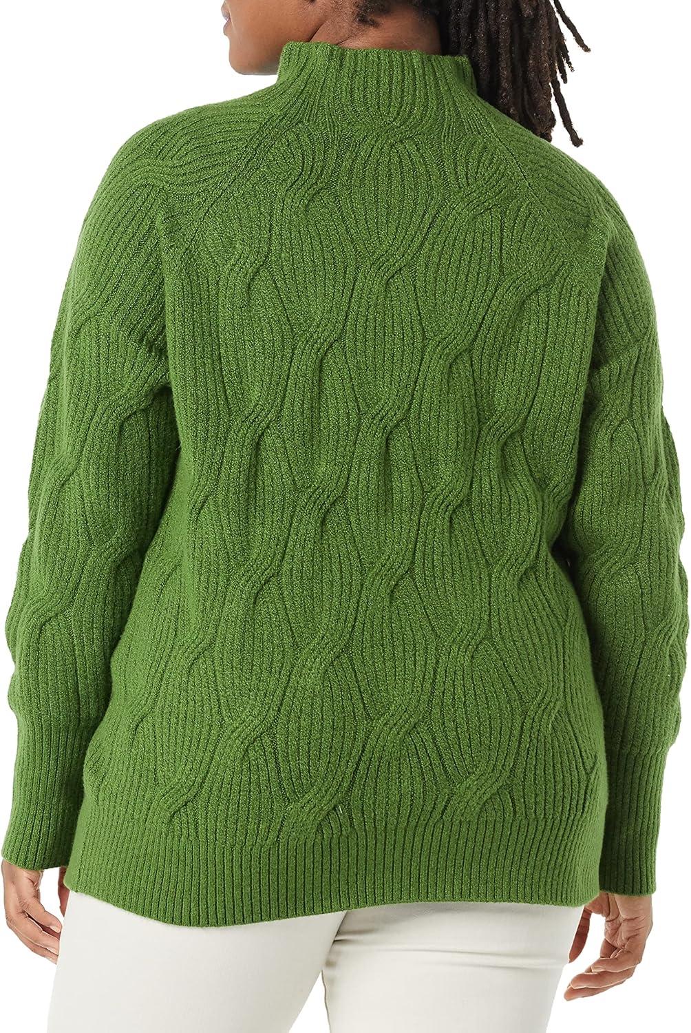 Amazon Essentials Women’s Winter Long-Sleeve Sweater, Soft Touch Funnel Neck Cable Knit(Green)