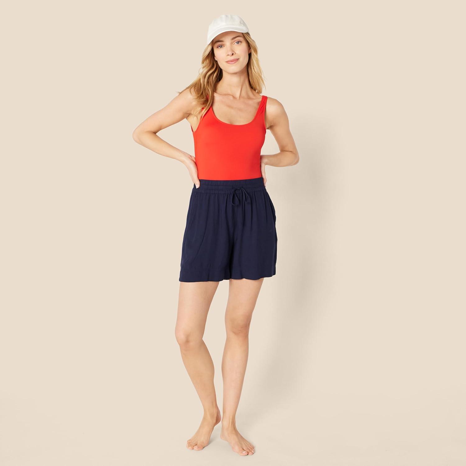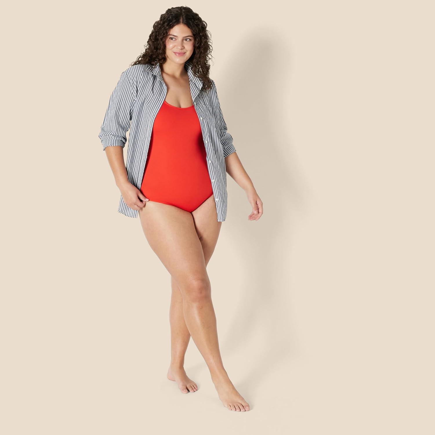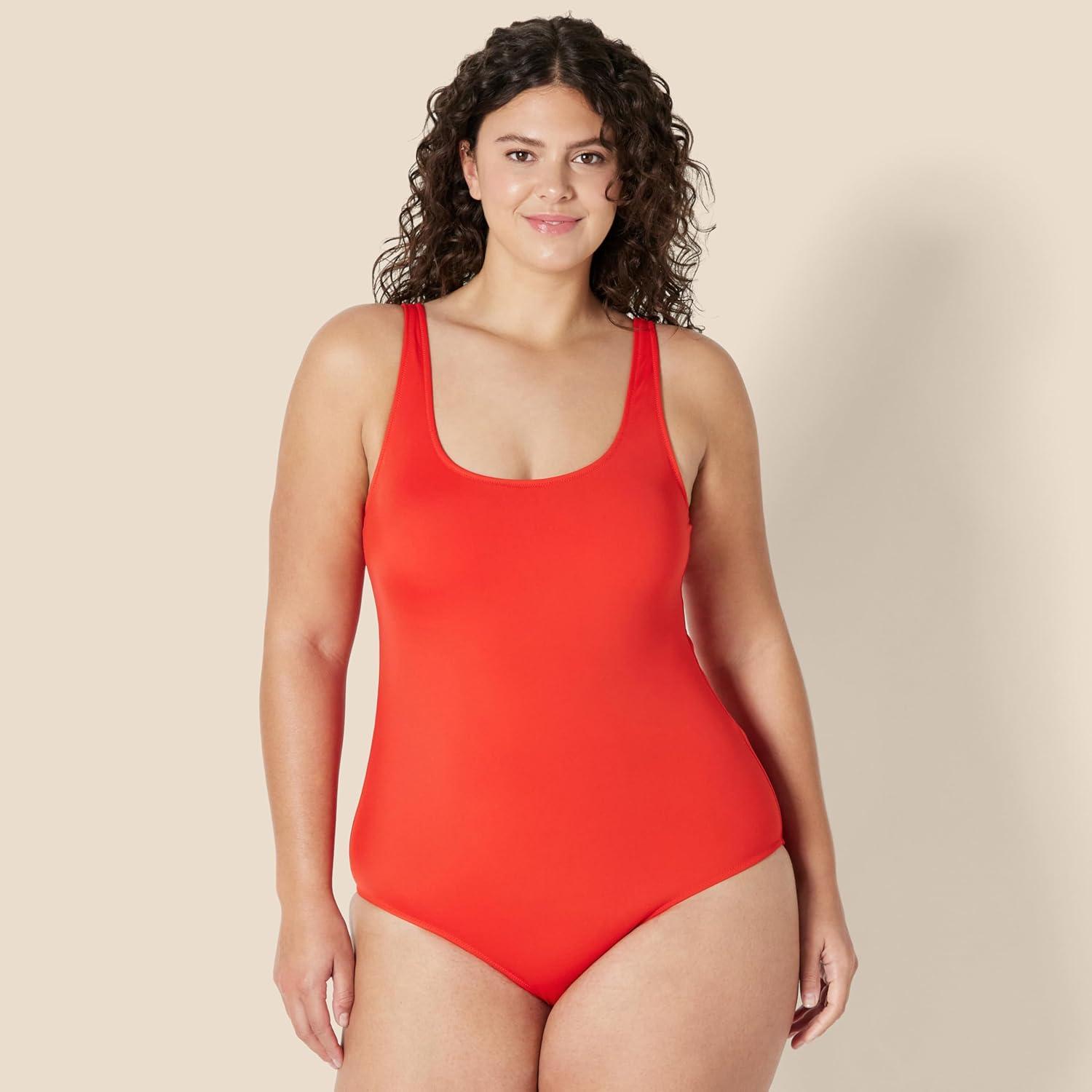 Amazon Essentials womens Women’s One-piece Coverage Swimsuit (Available in Plus Size)(Bright Poppy Red)