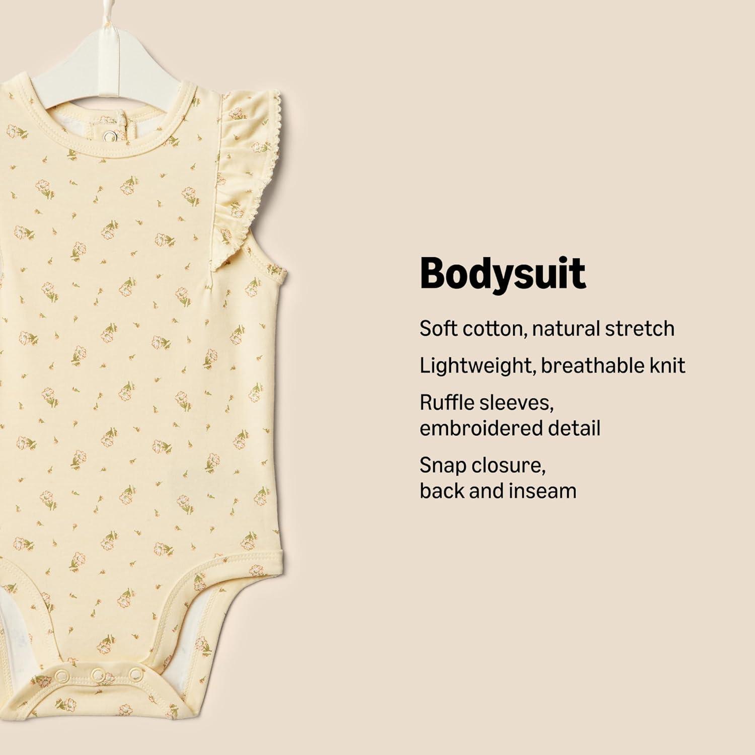 Amazon Essentials x Sofia Grainge Baby Girls’ Embroidered Ruffle Bodysuit, Pack of 2(Ditsy Flowers/Ivory)