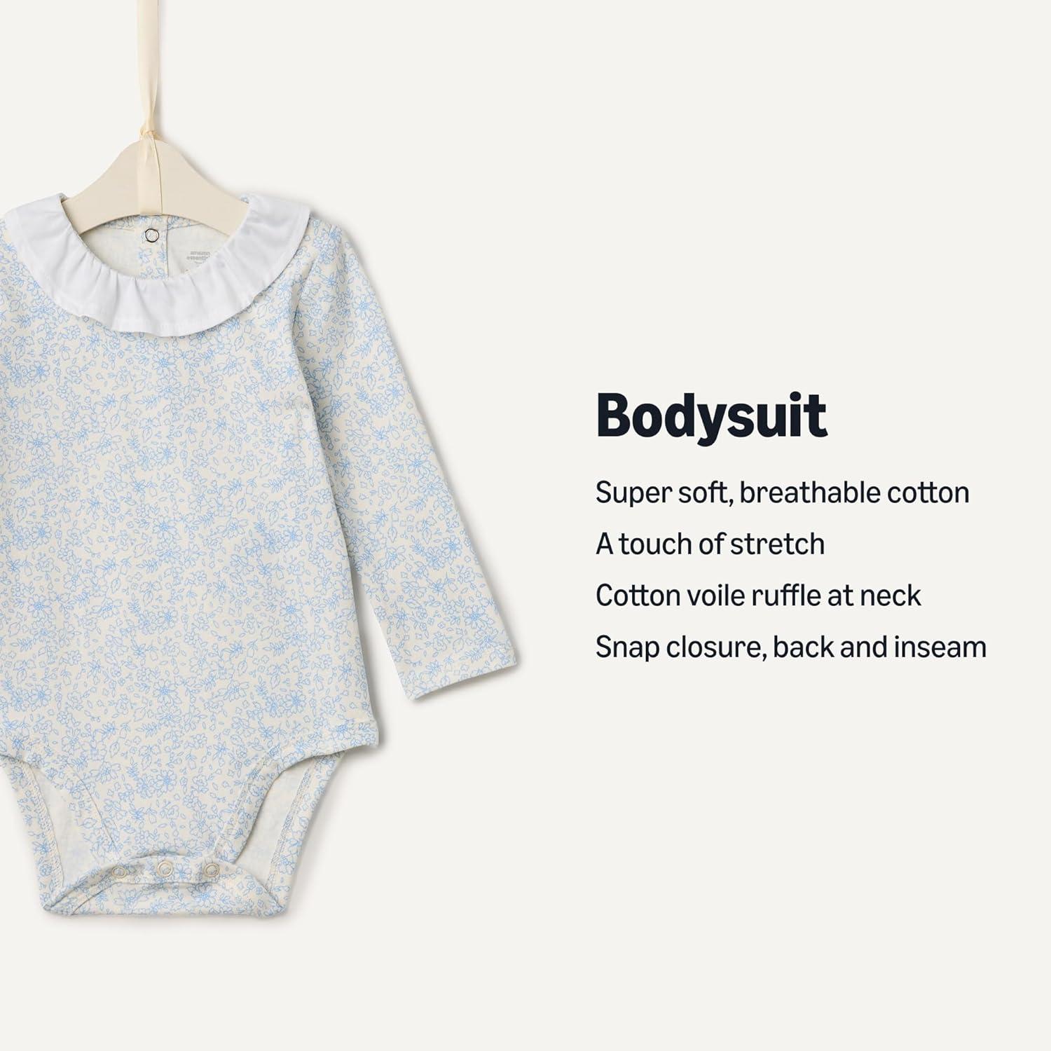 Amazon Essentials x Sofia Grainge Baby Girls’ Long-Sleeve Ruffle Collar Bodysuit, Pack of 2(Blooms/Ivory)