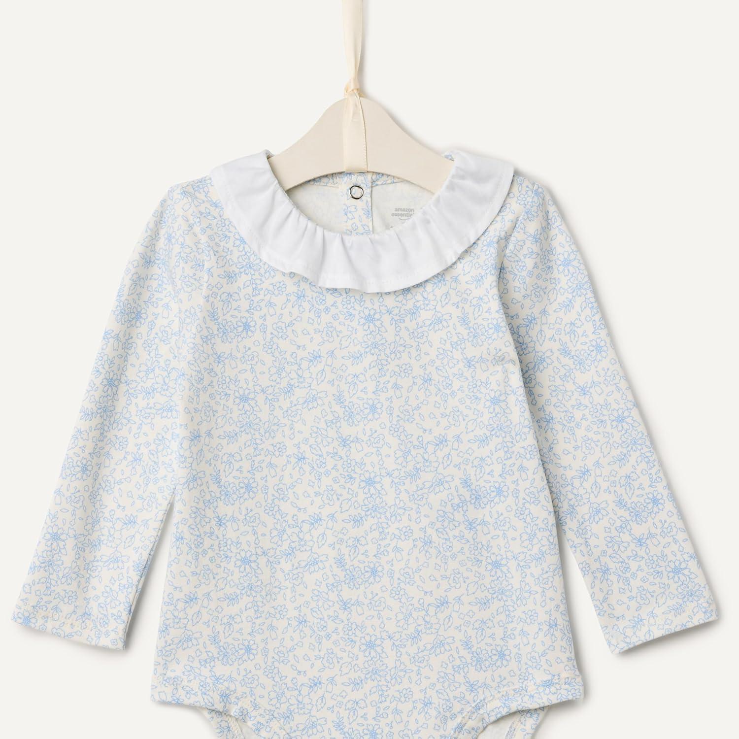 Amazon Essentials x Sofia Grainge Baby Girls’ Long-Sleeve Ruffle Collar Bodysuit, Pack of 2(Ivory/Light Blue)