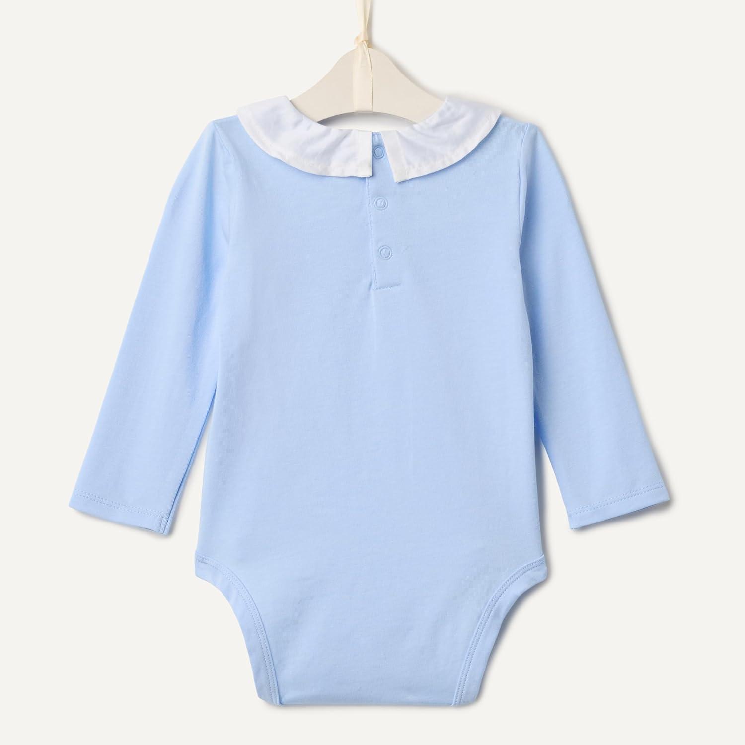 Amazon Essentials x Sofia Grainge Baby Girls’ Long-Sleeve Ruffle Collar Bodysuit, Pack of 2(Ivory/Light Blue)