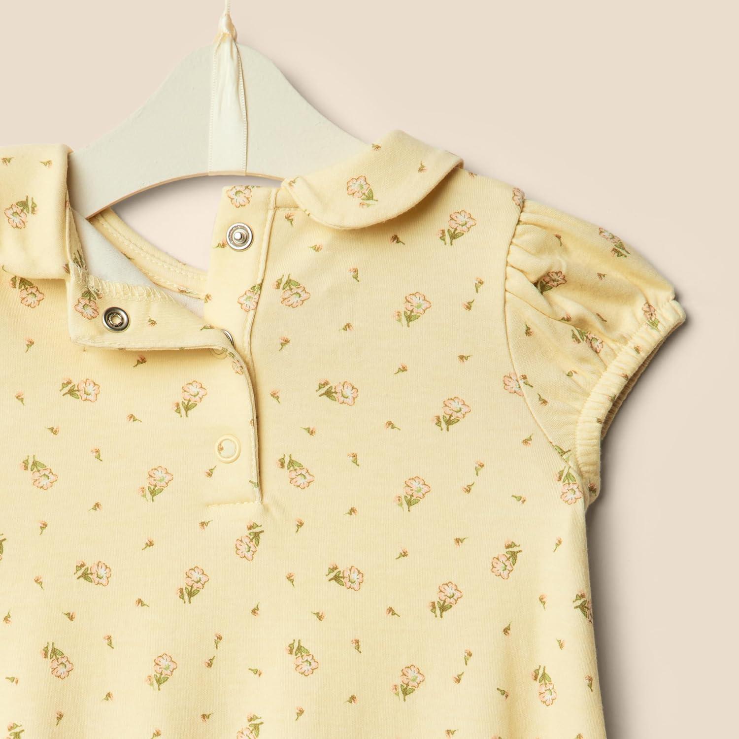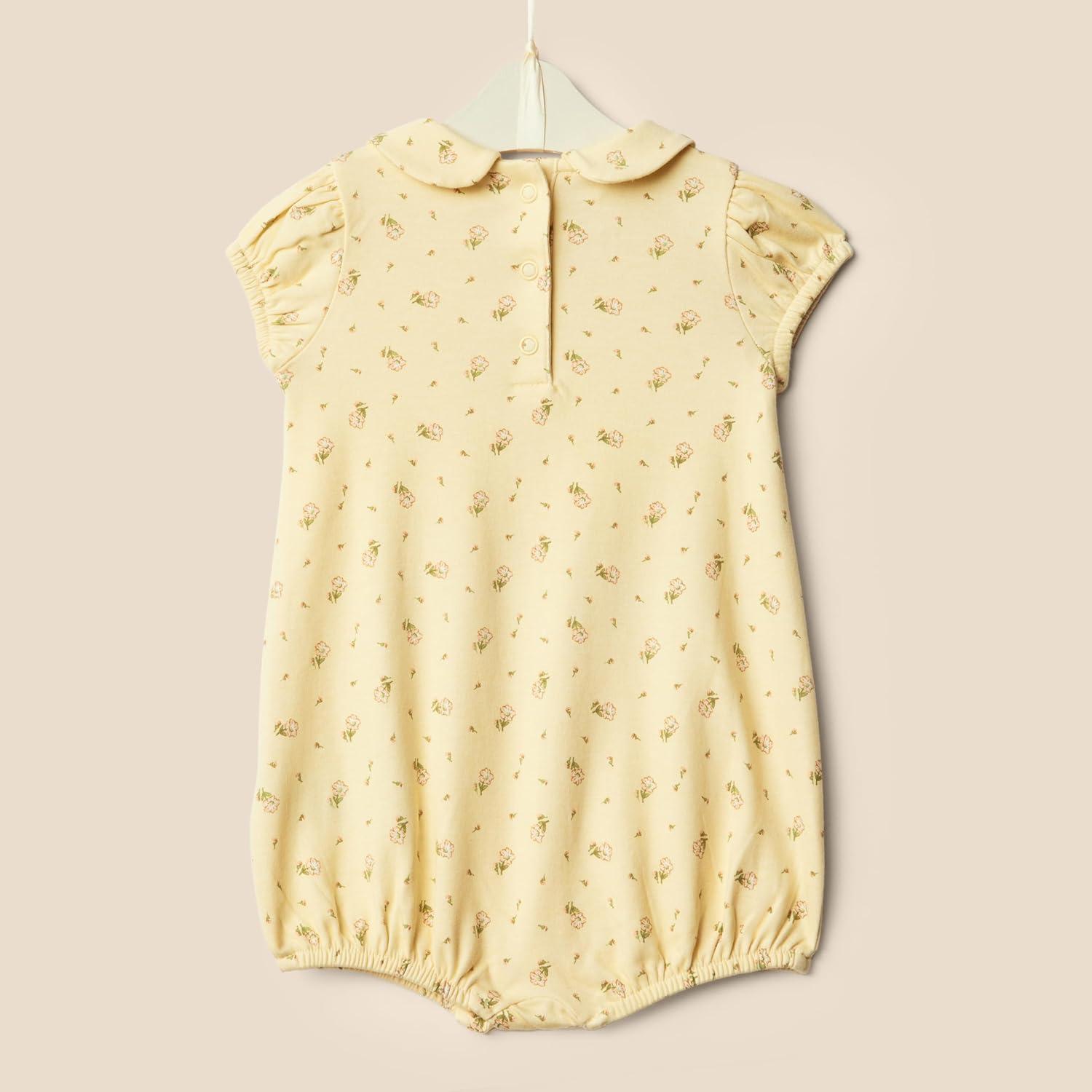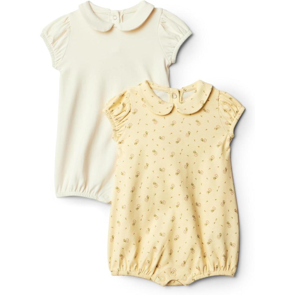 Amazon Essentials x Sofia Grainge Baby Girls' Short Sleeve Peter Pan Collar Romper, Pack of 2(Ditsy Flowers/Ivory)