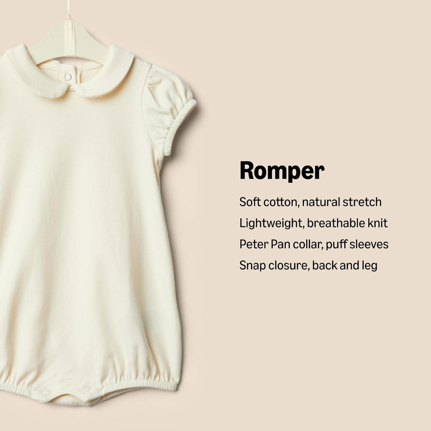 Amazon Essentials x Sofia Grainge Baby Girls’ Short Sleeve Peter Pan Collar Romper, Pack of 2(Ditsy Flowers/Ivory)